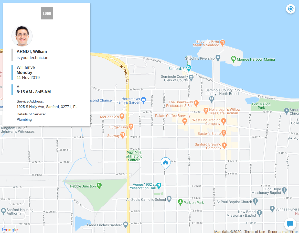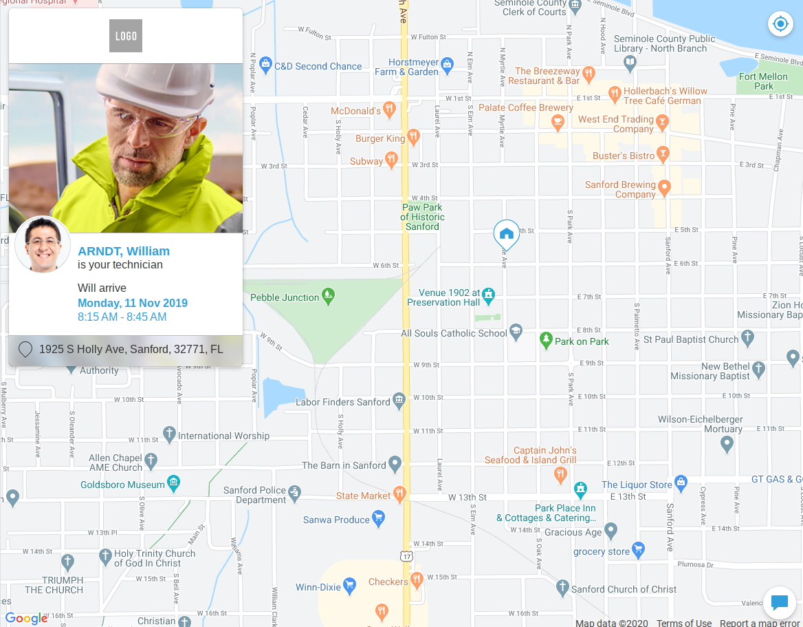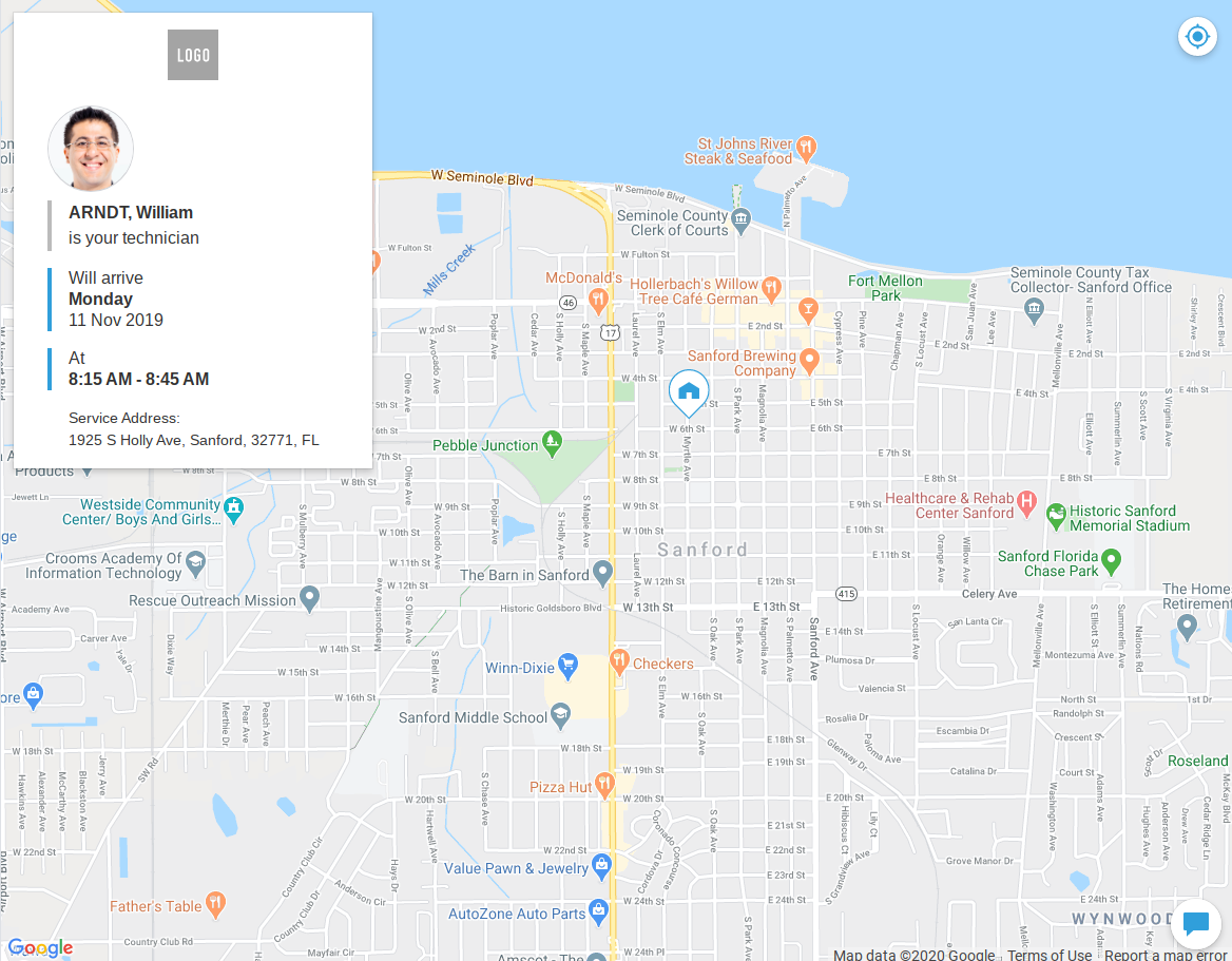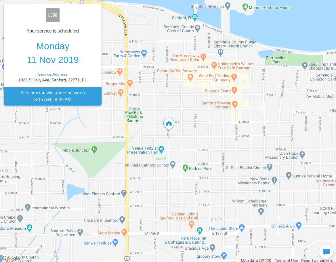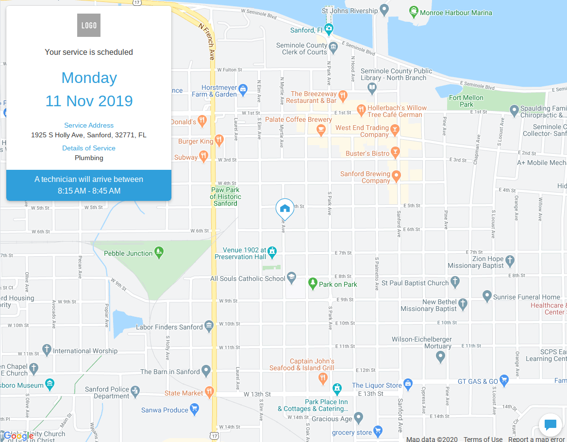 You can choose to use ETA, Delivery Window, or Service Window as 'Time Notified'. For example, you can save the ETA, which you communicated to your customer and the Where is My Technician screen shows this time, even if the technician adjusts the previous activity. This way, the feature also prevents the application from updating the agreed time automatically.
