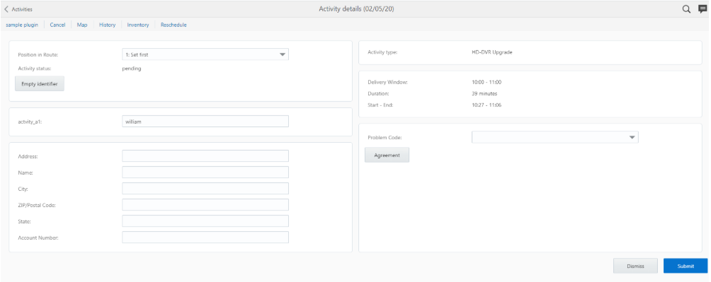 Earlier, the activity type was shown on the Where is My Technician screen by default, without the ability for you to show or hide it. Starting with 20B, you can show or hide the activity type. The activity type is selected by default for all new themes.