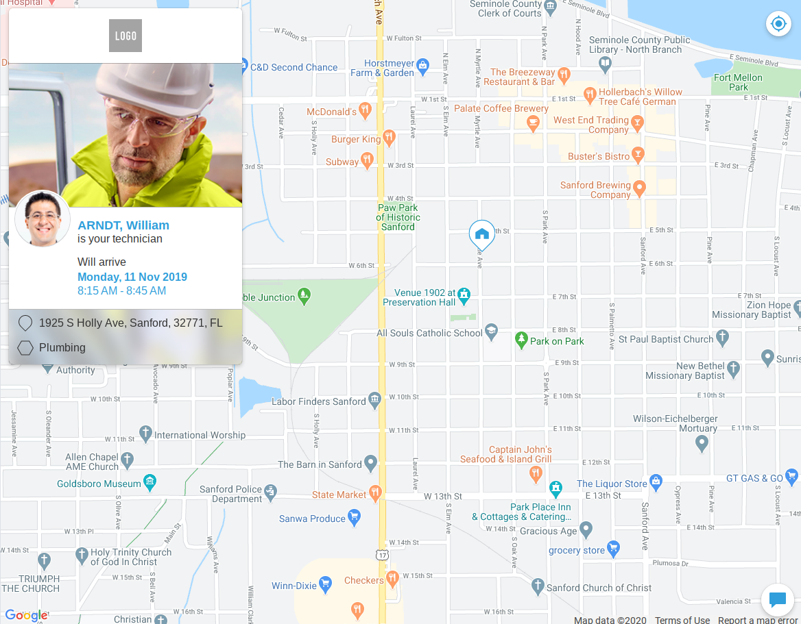 Earlier, you could show the 'Delivery window', or 'Service window' using the {ARRIVAL TIME RANGE} placeholder. Starting with 20B, you can show 'Time Notified' on the {ARRIVAL TIME RANGE} placeholder. You can set the value for Time Notified through a Message Step with the Outbound API using 'send_message’. If you set the value, it is used on the Where's My Technician screen, instead of the Delivery Window or Service Window. If 'Time Notified' is not populated then Delivery Window or Service window is shown.