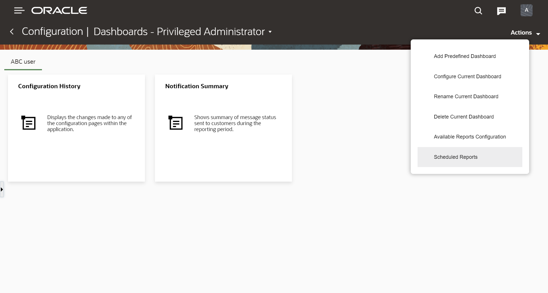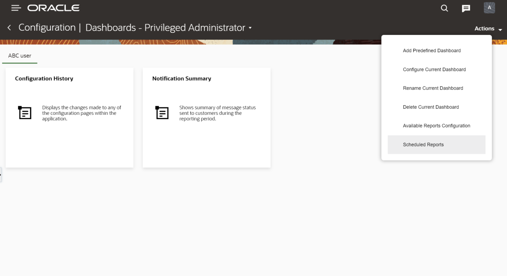 - Make sure users who have privilege to access schedule report also have access to Dashboards from the Configuration window.