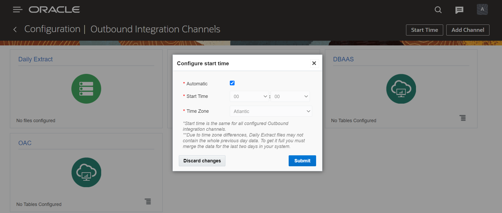 To view the daily extract time, click the Start Time option from the outbound channel.