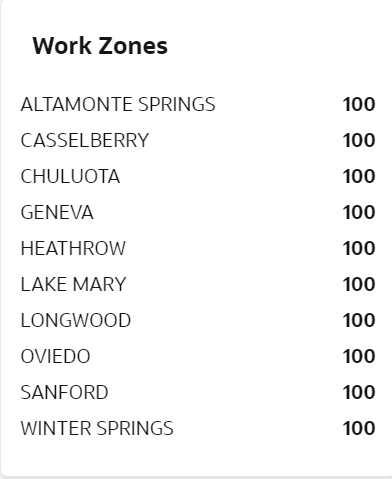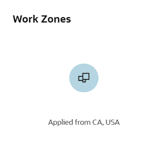 In cases where a resource has directly-assigned work zones, then the Map is not shown anymore on the tile. Instead, the list (up to 10) of those assigned work zones will appear. Redwood design has been applied for this tile.