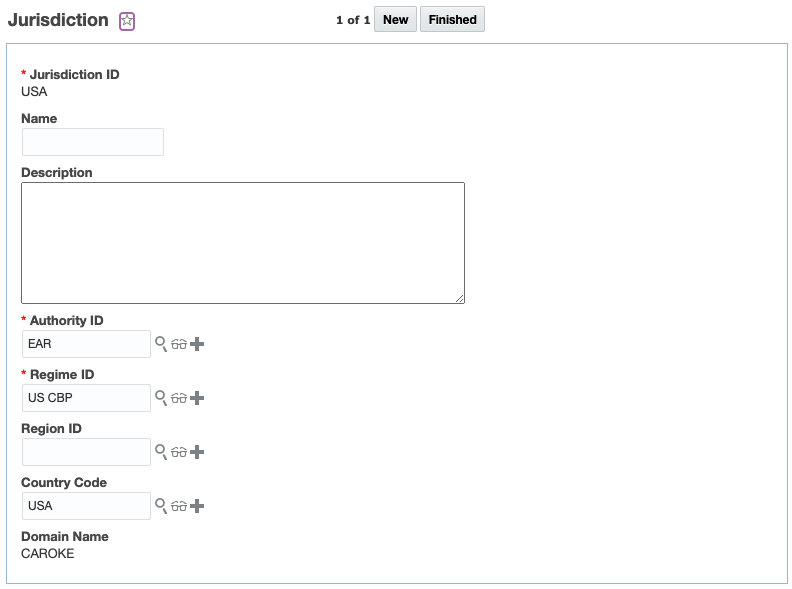 - Authority ID - the authority associated with the jurisdiction. This is a required field.