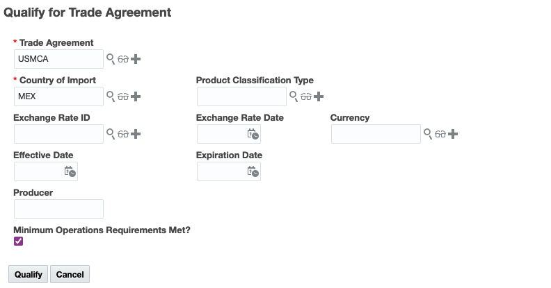 - For more information on the qualification process, please refer to the GTM How To/Configuration Topic called Trade Agreement Qualification.
