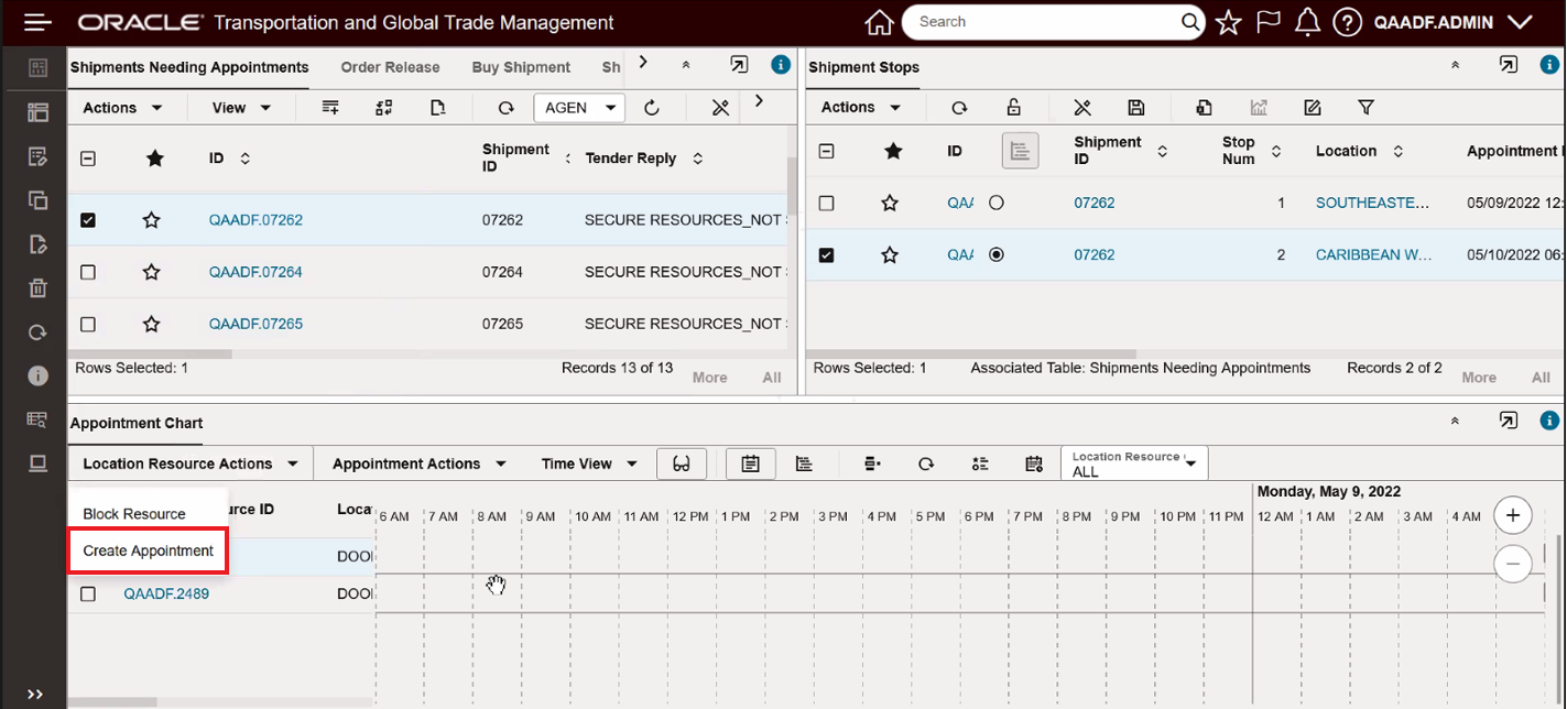 - Dock Scheduling Gantt Actions - Block Resource, Create Appointment