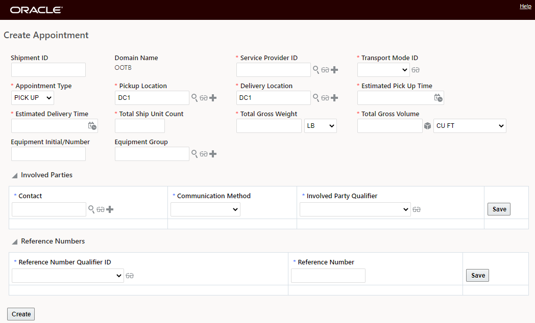 NOTE: The Buy Shipment screen set used does allows for create New.
