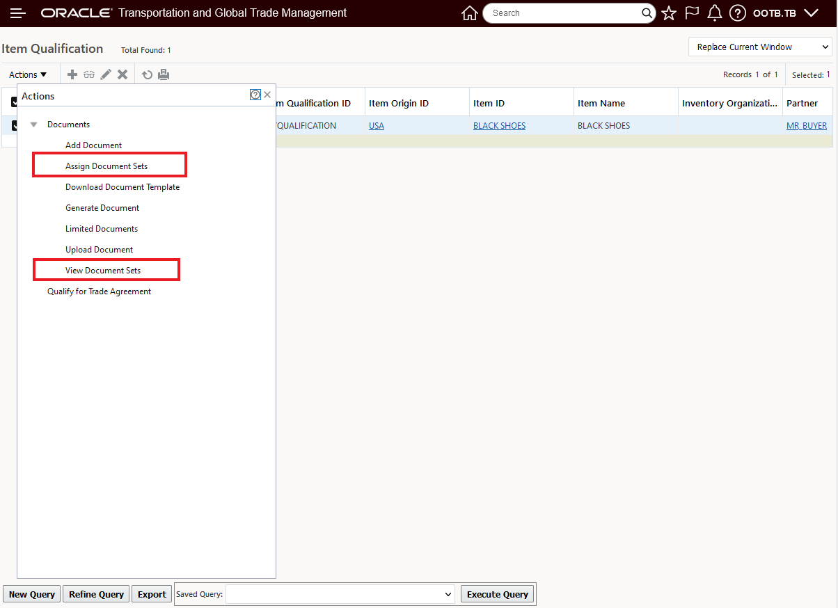 Once triggered, GTM looks at the item on the transaction line to see if the item has been qualified. If so, the information is copied to the transaction line and the status is set to QUALIFIED. If the item has not been qualified, then qualification is run using the values on the transaction line and the associated trade item structure.