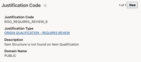 - ORIGIN QUALIFICATION - REQUIRES REVIEW - This is a new justification type with associated codes that tell you why an item qualification requires review.