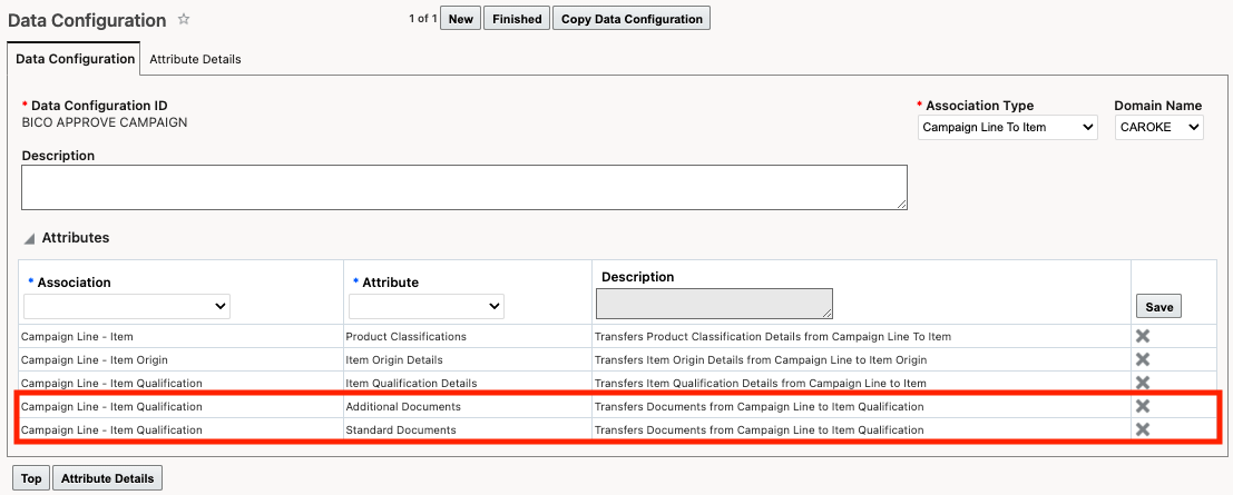 - Copy Additional Documents from Campaign Line to Item Qualification