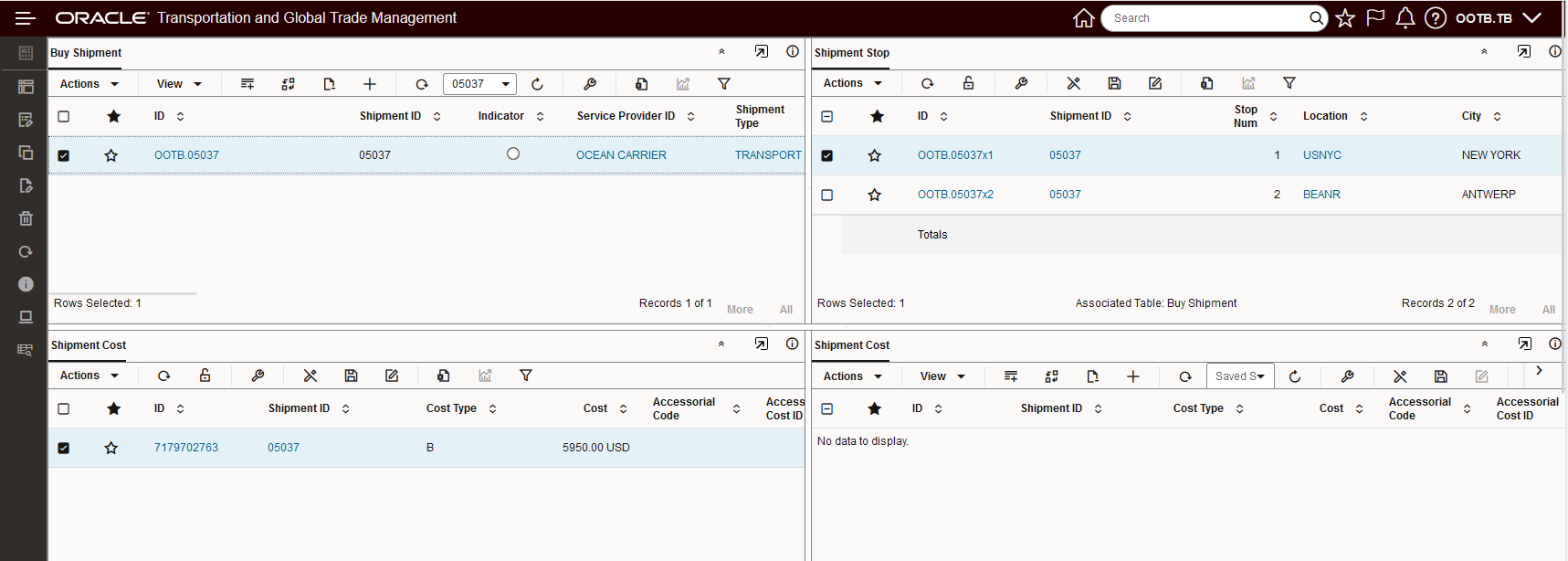 - The lower left pane provides the Shipment Cost and is associated with the Buy Shipments.