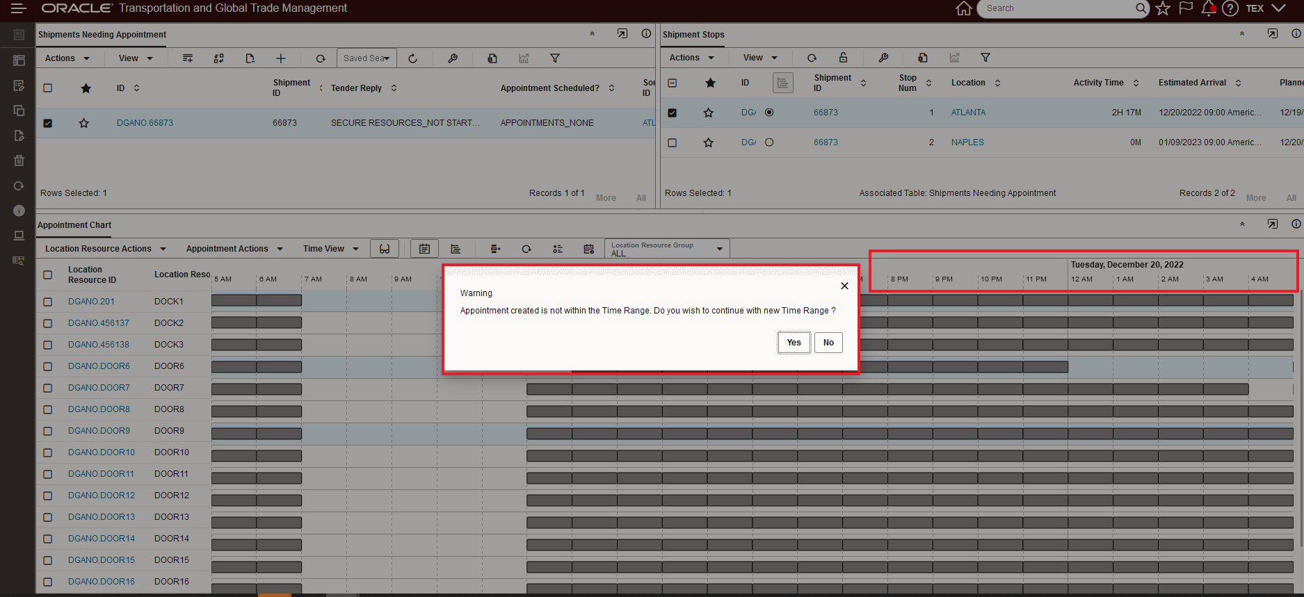 The shipment stop's appointment is being scheduled for 7:00 AM on the 20th.