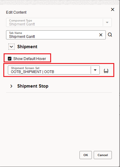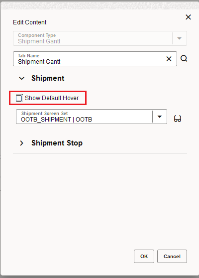 This feature provides you with several options for configuring the Hover Text displayed in your Gantts - Shipment, Work Assignment or Driver. You have the option of configuring the Hover Text based on the Public Screen Set (the default behavior), or you can configure and select your own Screen Set to use for the Hover Text or you can use both the Public Screen Set and your configured Screen Set to identify the fields to display in the Hover Text.