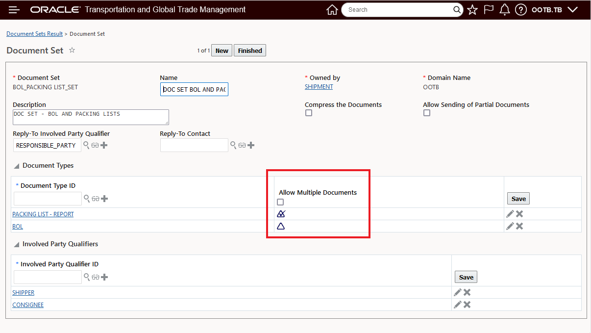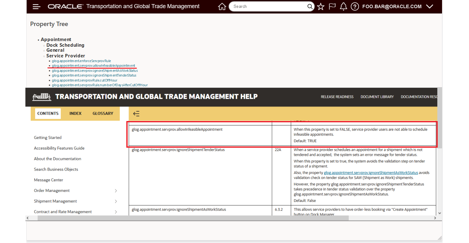 - Doc ID 796594.1: Oracle Transportation and Global Trade Management Documentation and Training Resources. Describes the published documentation available. Use this document to ensure that you leverage all existing resources to learn about, install, implement, and use this product.