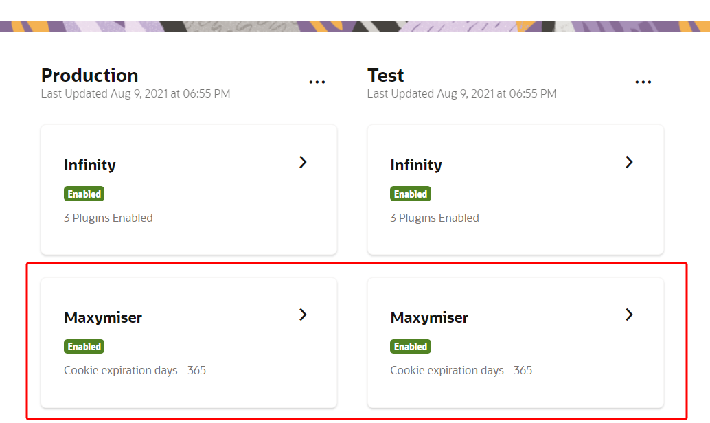 This enhancement enables Oracle Infinity to connect to your Oracle Maxymiser instance, and it allows Oracle Infinity data to be used in your Oracle Maxymiser campaigns for in-session personalization, tailoring your customer's experience with relevant content and messaging.