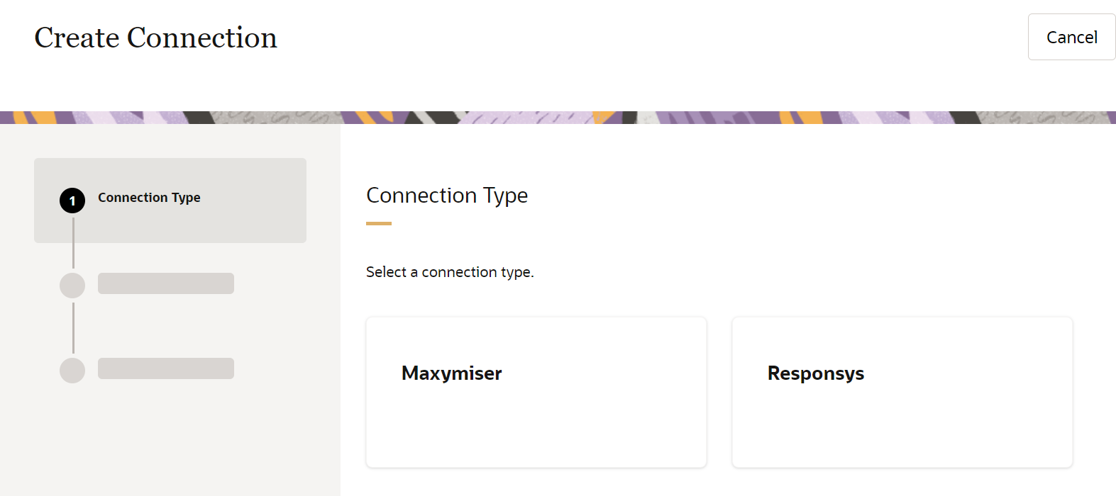 The Infinity Connections feature enables the configuration of system-to-system connections, so that Oracle Infinity can easily connect to your Oracle CX Marketing solutions, such as Oracle Responsys.