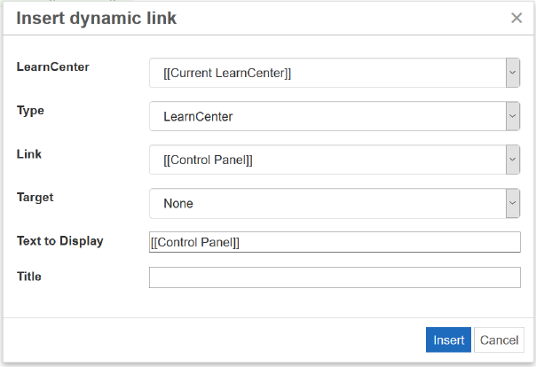 This functionality was previously located on the Insert Link window as the Link list field, and was used to create links within the current LearnCenter. This functionality has been expanded on the new window.