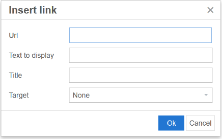 The window that displays when you click the button contains all of the previously existing fields, with the exception of Link list, which has moved to the new window, as described above.
