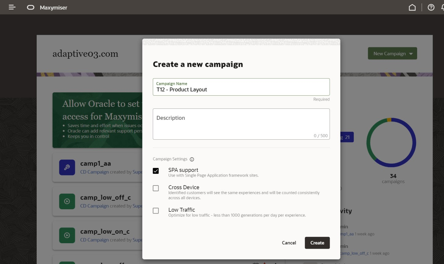 Maxymiser now ensures you are aware of Campaign Settings when you create a new campaign. Campaign Settings allow you to easily enable the following: