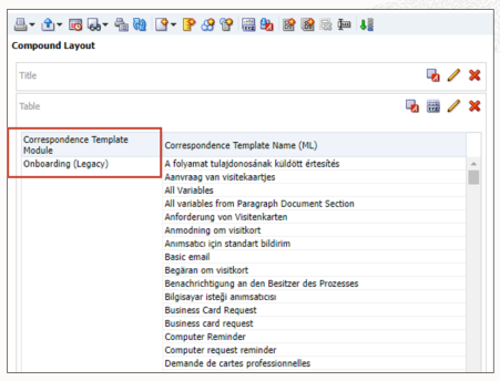 To accomplish this a new Correspondence Template Module presentation column was added Correspondence Templates in the Administration subject area. If you include this new Correspondence Template Module as a column or a filter in your analysis, you're able to filter message templates ensuring that your report includes only relevant data.