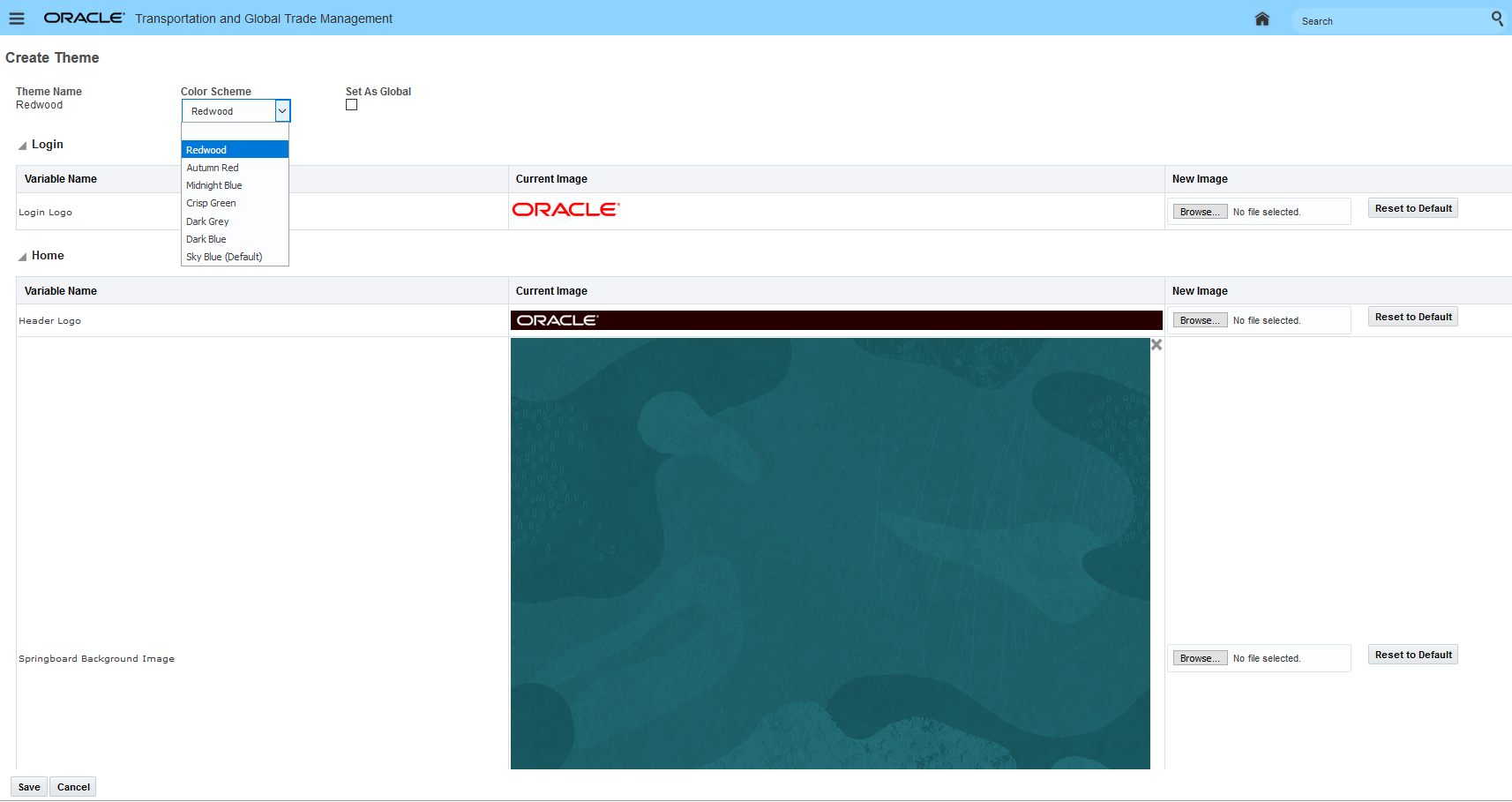 This feature provides you with a new Redwood Color Scheme option that you can use to create a new theme to apply to your OTM/GTM instance. The Redwood Color Scheme is designed to be a warmer, more organic and human color palette.