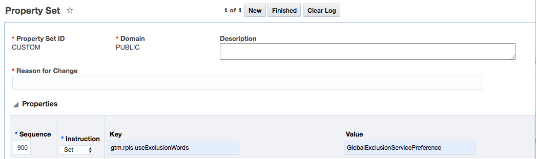 - If you previously had this property set to gtm.rpls.useExclusionWords = Global, the exclusion words list in the property gtm.rpls.globalExclusionWords was copied to the Service Preference called 'GLOBAL_EXCLUSION_WORD_SERV_PREF' as part of the installation of 20C.