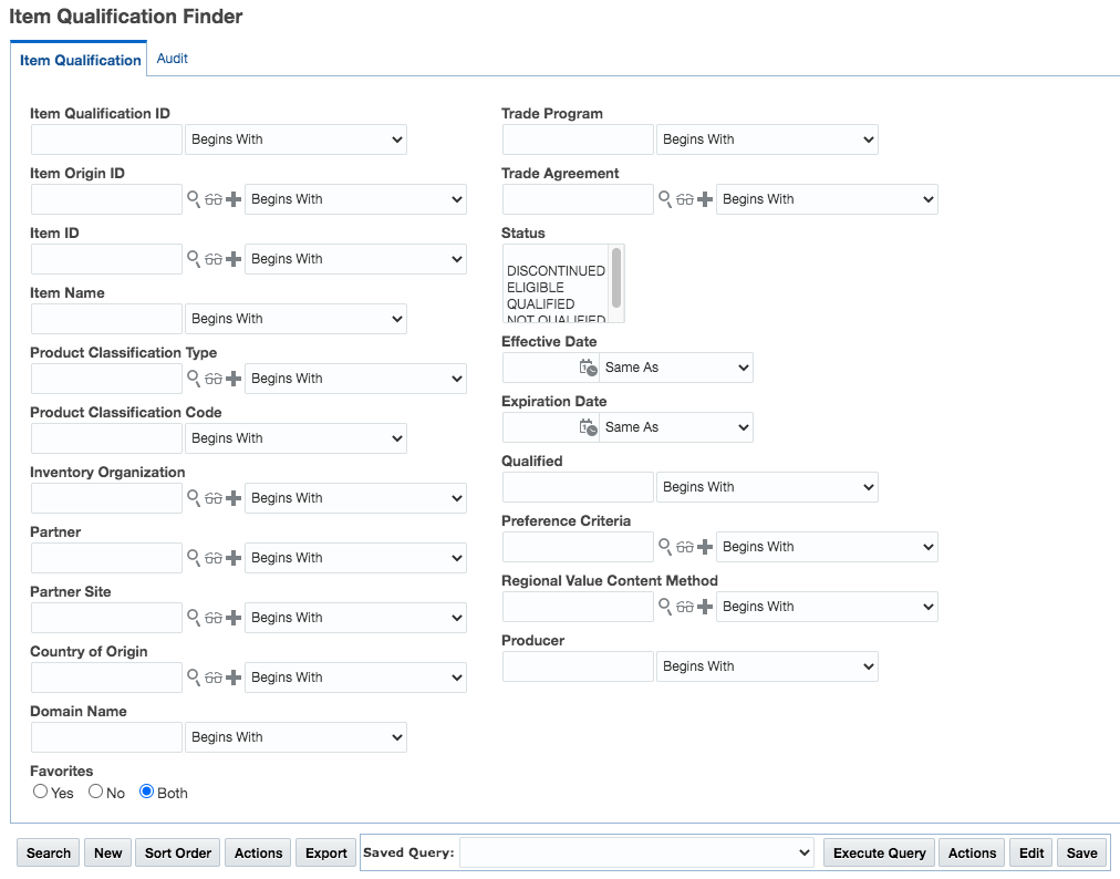The Item Qualification Finder and Finder Results have been updated to include more fields. With these additional fields, you are able to find item qualification records based on item or party information and to see this additional information in your finder results.