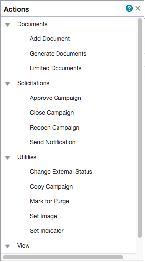 If you close a campaign by accident, you can trigger the Reopen Campaign action. This action changes the status on the campaign to a status type of CAMPAIGN_STATUS with a corresponding value of CAMPAIGN_IN_PROGRESS.