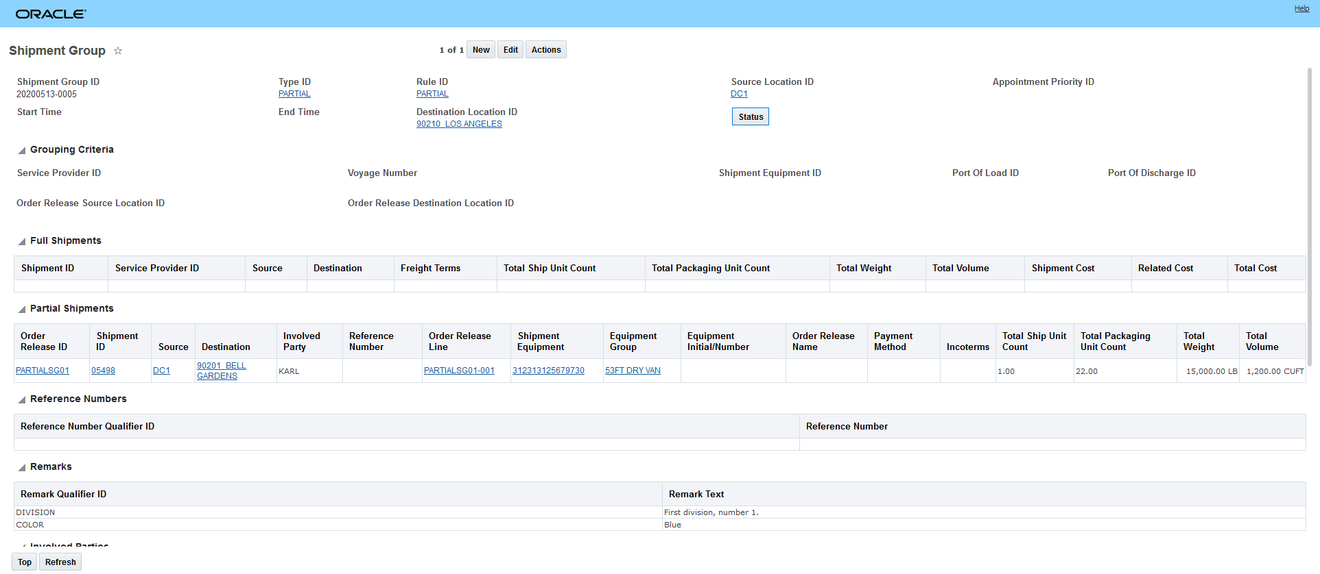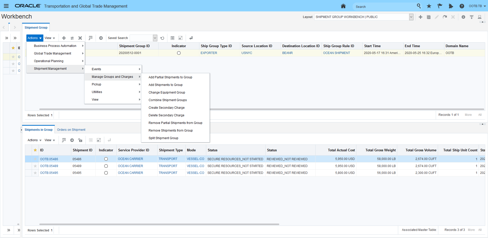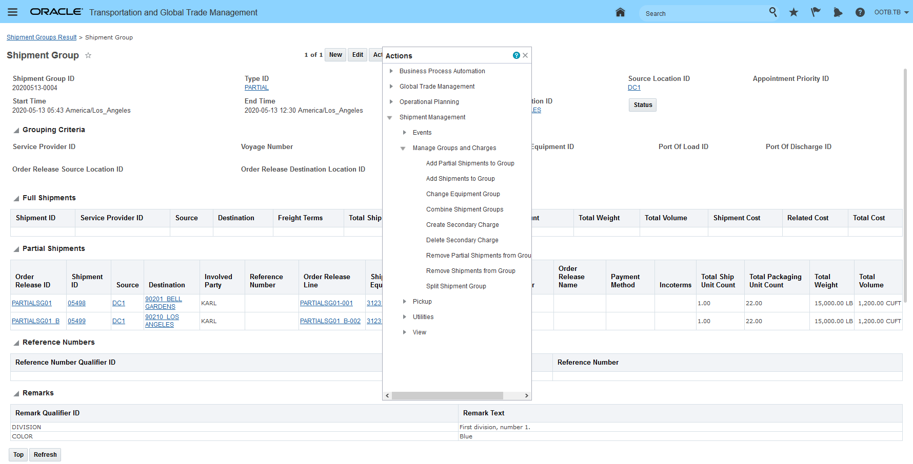 - Shipment Group - Open for Add/Remove and Close for Add/Remove Actions