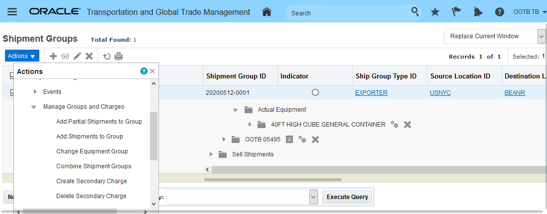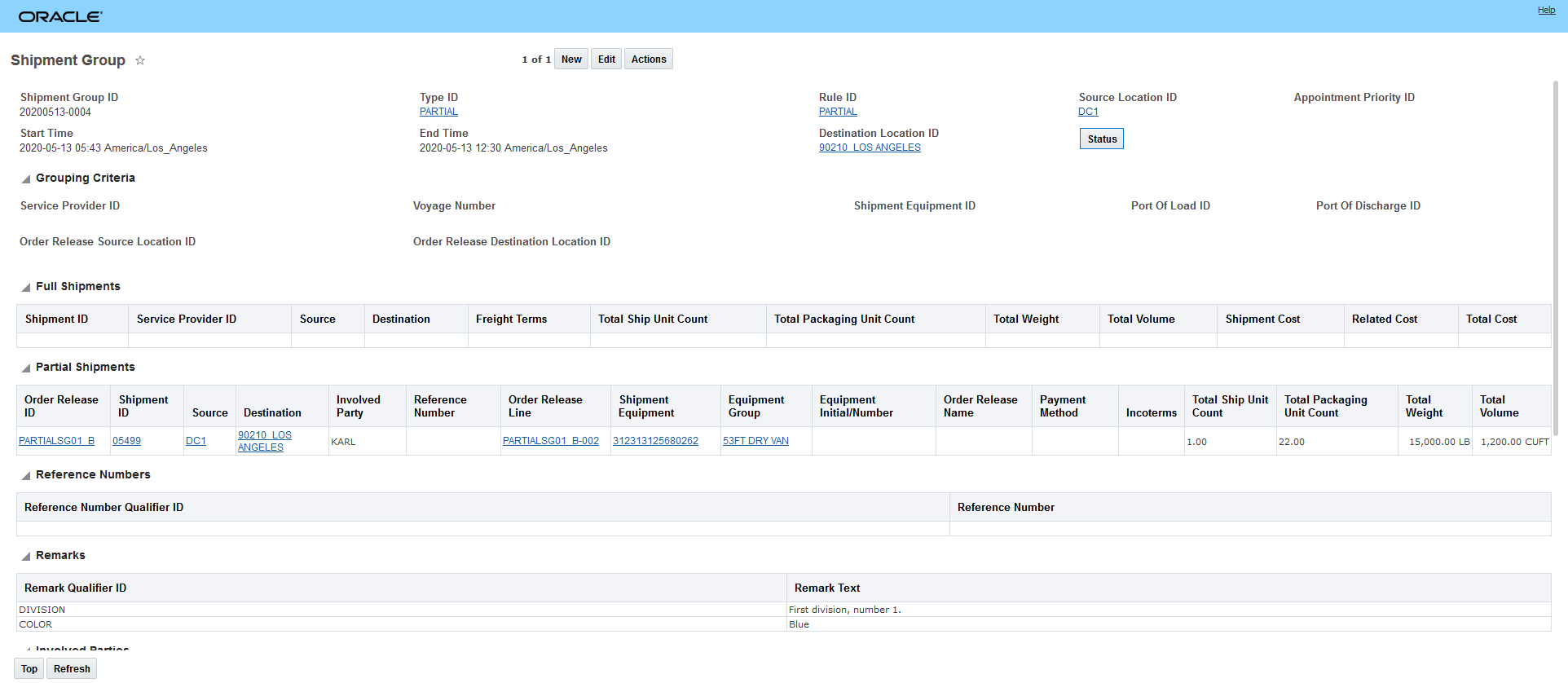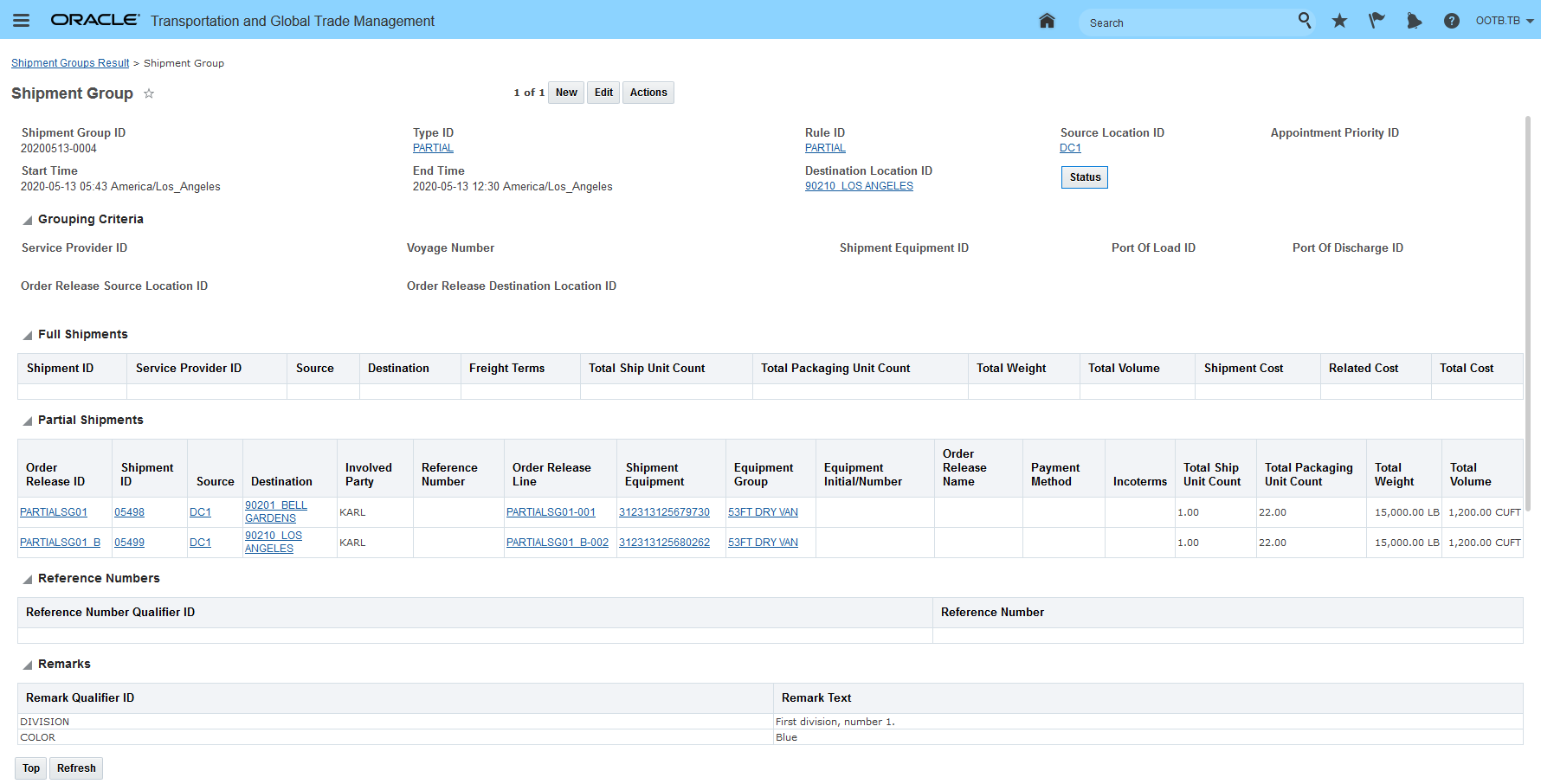 - Shipment Group - Open for Add/Remove and Close for Add/Remove Actions