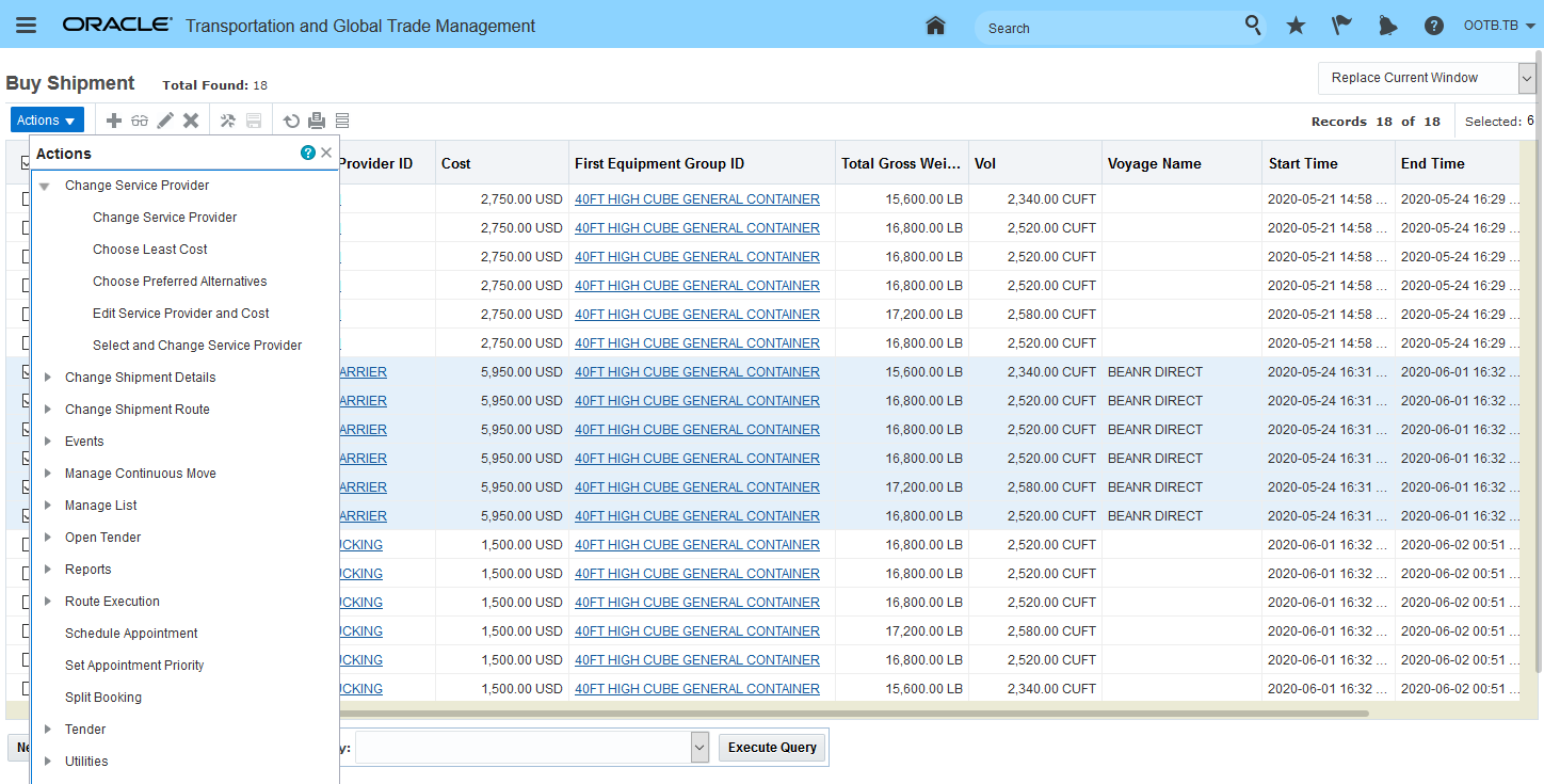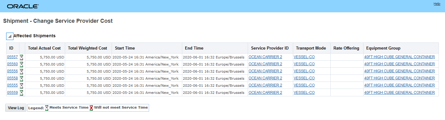 - Run Edit Service Provider and Cost Action for Multiple Shipments