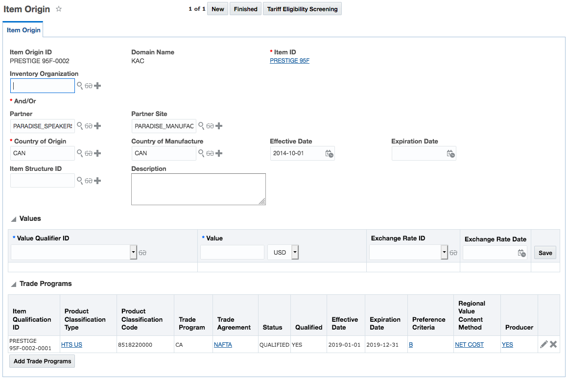 Trade Agreements and other supporting information enables you to proactively leverage the trade agreements your business can take advantage of to reduce duties and taxes. There are many Trade Agreements in effect globally, each with different parameters but all following a similar structure.