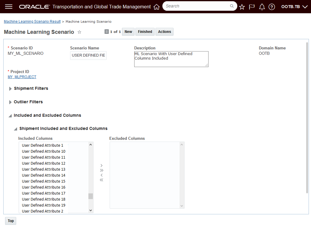 By default, the User Defined Attributes are included in the machine learning model, you have the option to selectively exclude (or include) these columns using the Shipment Included and Excluded Columns functionality when defining your Machine Learning Scenario.