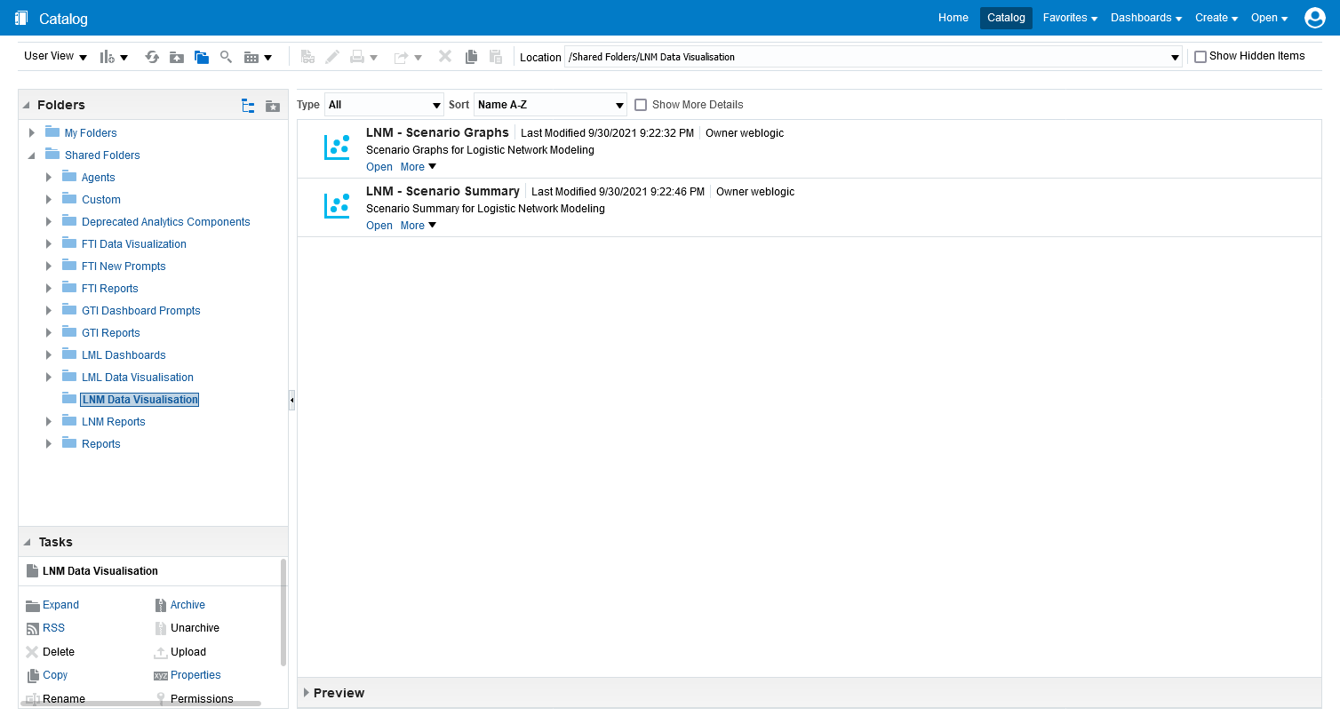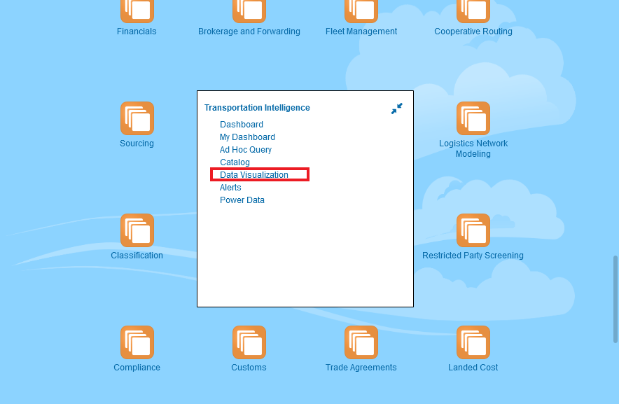 This feature extends your analytics data analysis capabilities to include the Oracle Analytics Server (OAS) Data Visualization capabilities. Data Visualization provides you with the capabilities to generate configurable visual analytics - like maps, charts, graphs - for your existing BI subject areas - Transportation Intelligence, Global Trade Intelligence, Logistics Network Modeling and Logistics Machine Learning.