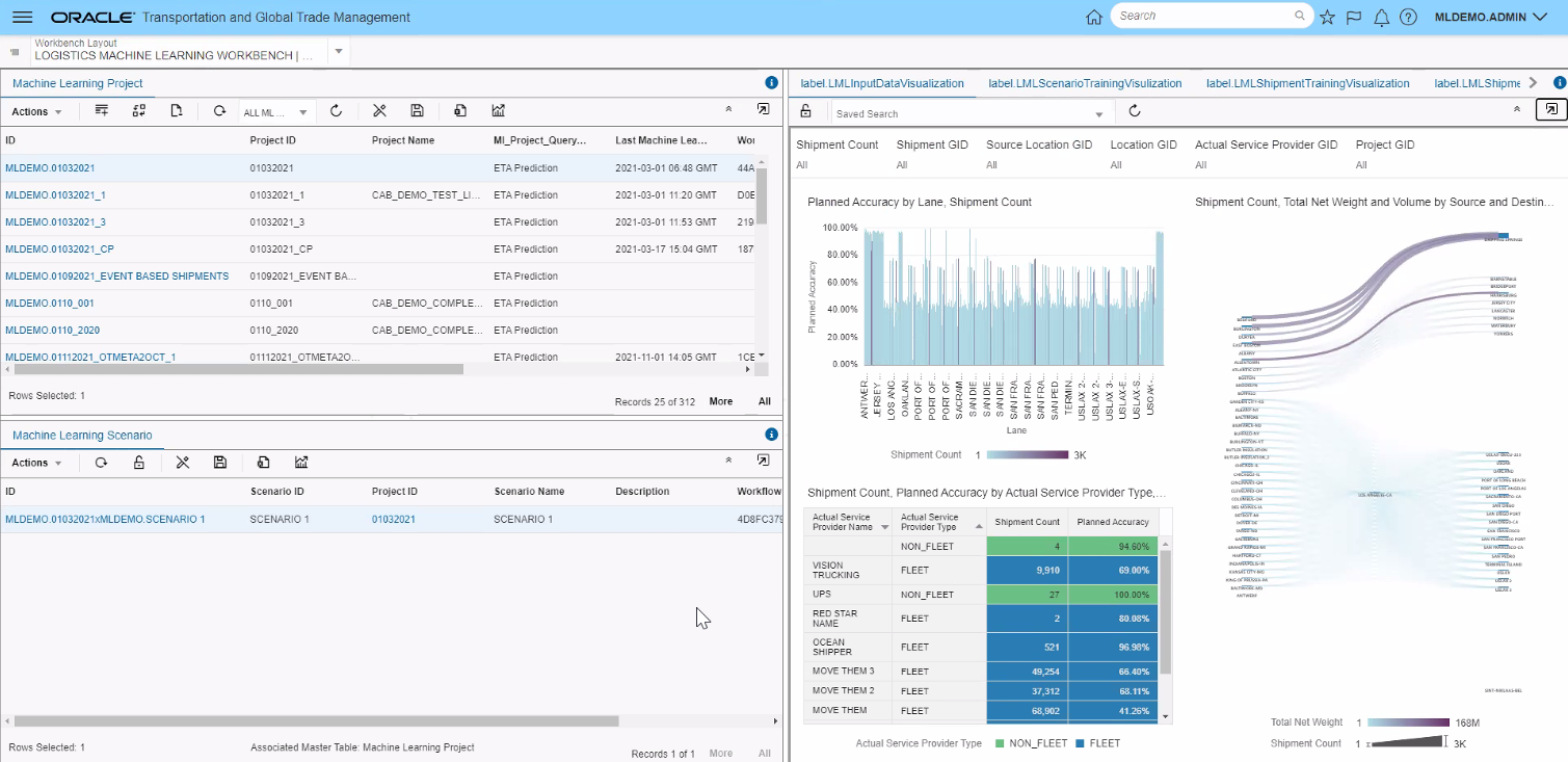 For Logistics Machine Learning - several pre-defined data visualization projects have been provided. These pre-defined projects are available with the Data Visualization application directly, in addition, the pre-defined projects are also available for inclusion as panels in the Enhanced Workbench.