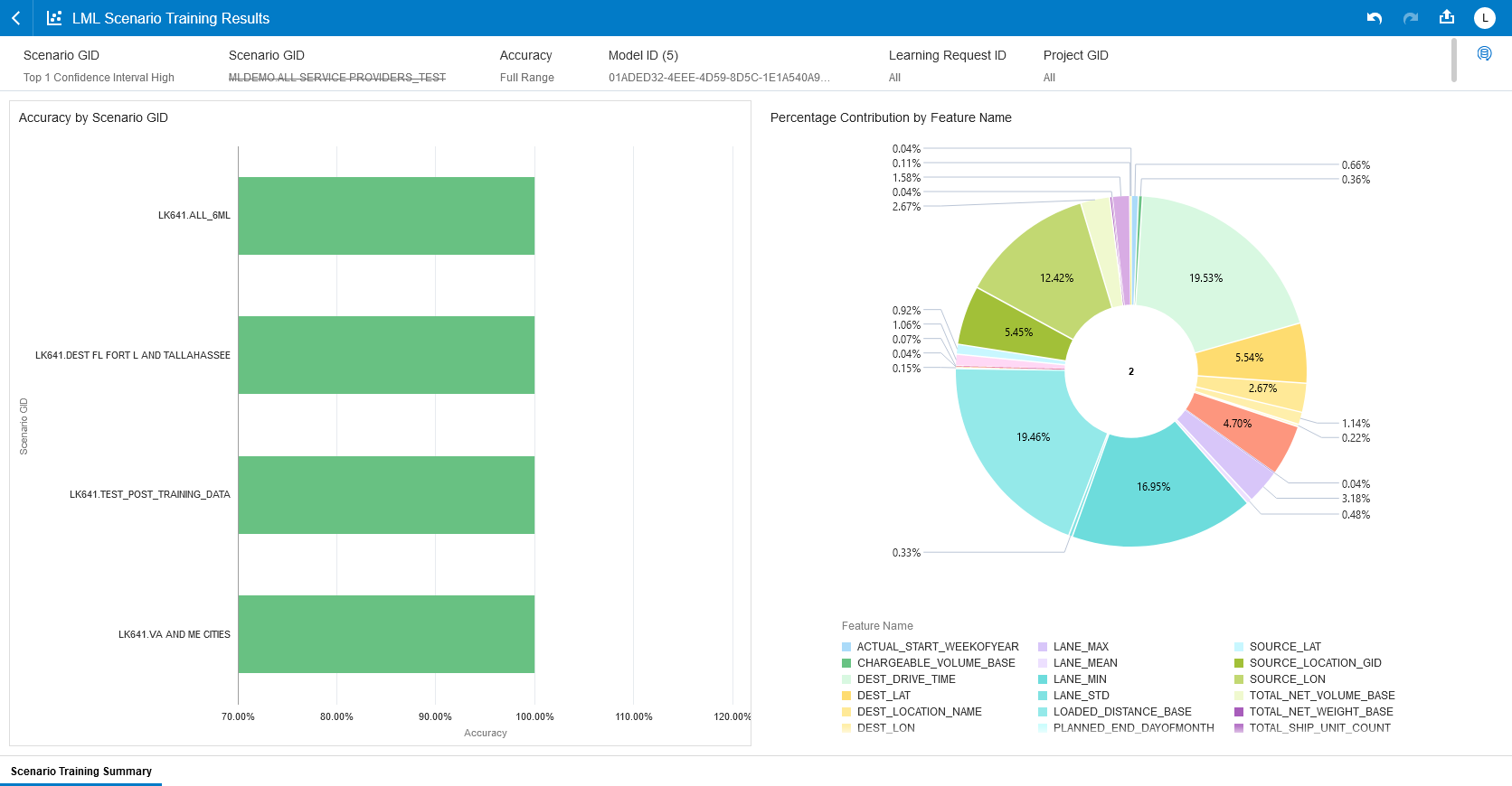 Below is the LML Scenario Training Results - pre-defined project, which demonstrates some of the additional graphical analysis options provided within a Data Visualization tool.
