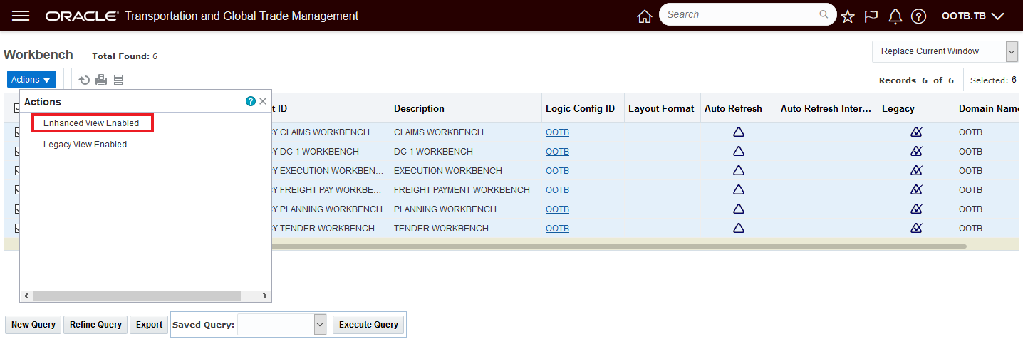 The Workbench Manager allows you to easily find and select one or more of your Workbench layouts and convert the Workbenches between a Legacy or Enhanced Workbench view using the actions - Enhanced View Enabled - which moves the Legacy Workbench to an Enhanced Workbench - or Legacy View Enabled - which moves an Enhanced Workbench to a Legacy Workbench view.
