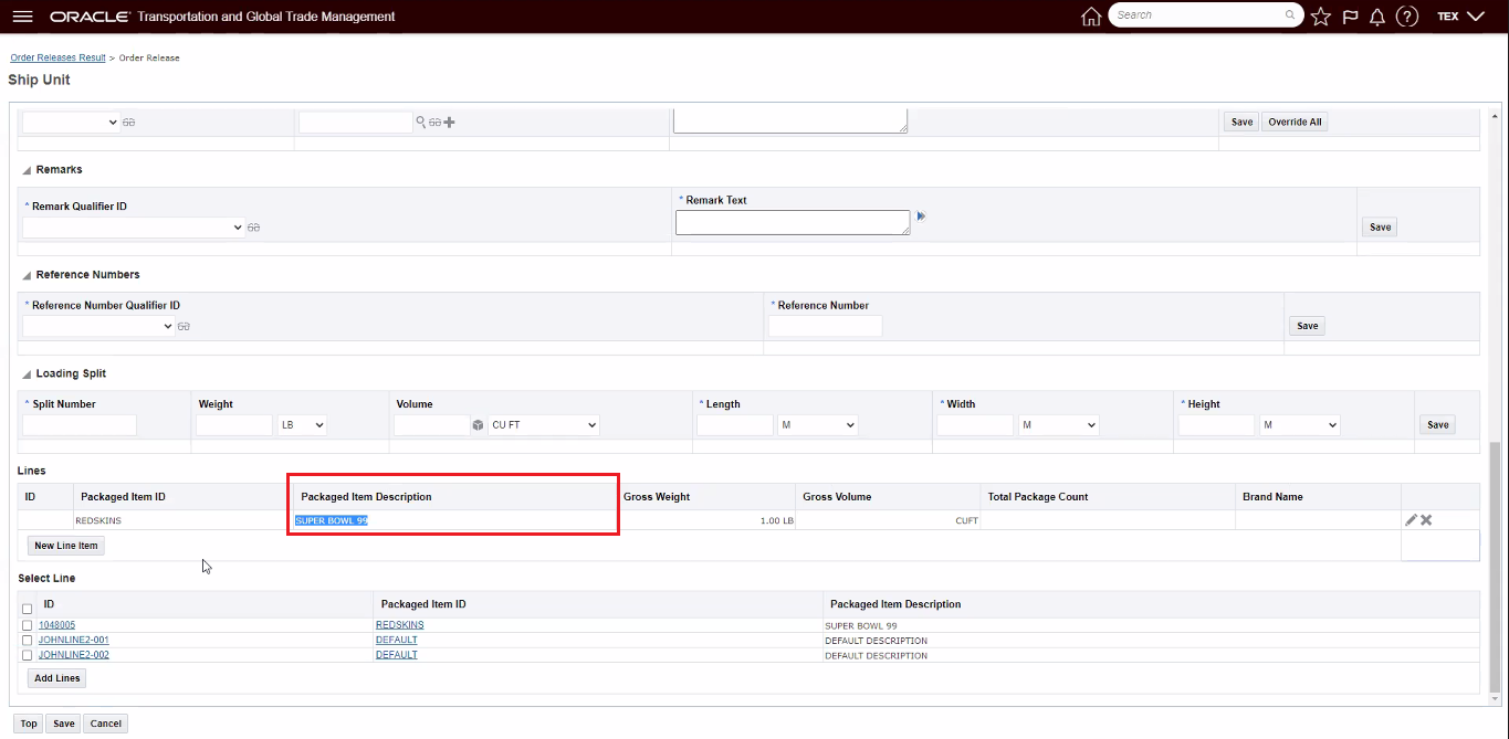 - Packaged Item Description Visible After Running Add New Line Item Added