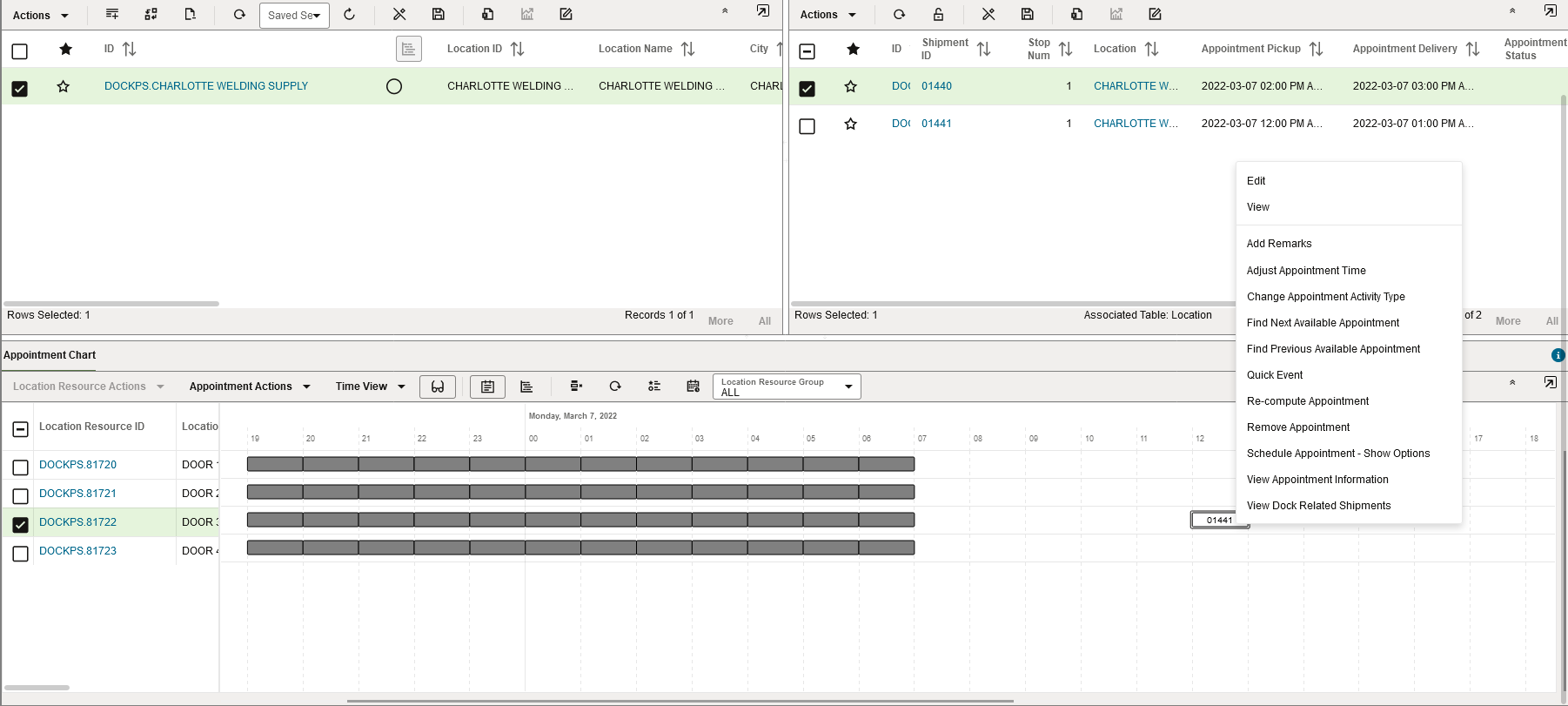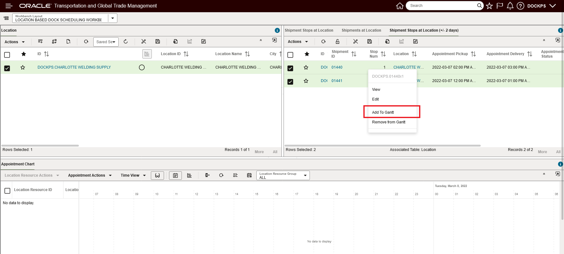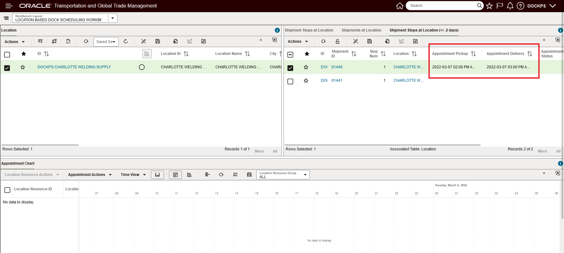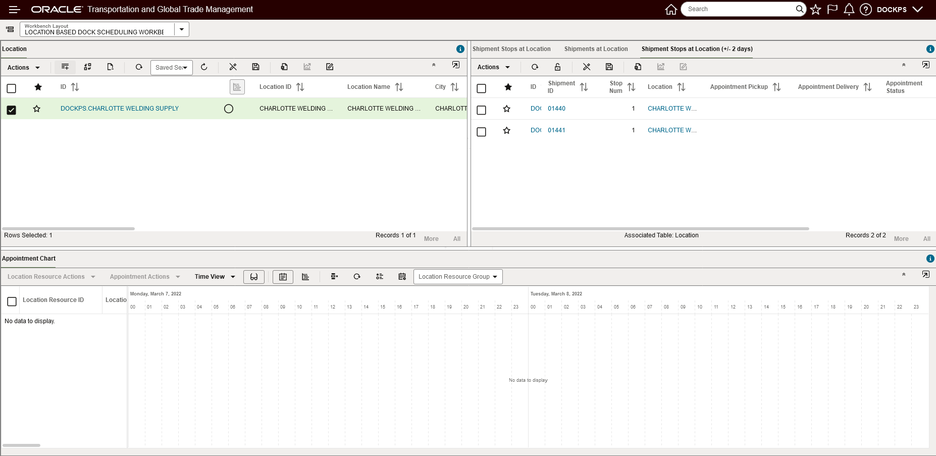Public Enhanced Workbench - Location Based Dock Scheduling Workbench |