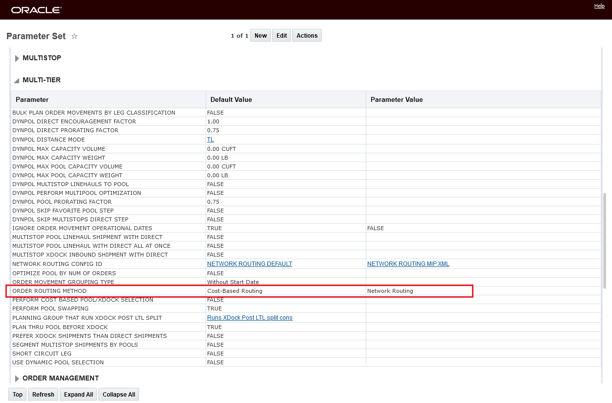 Bulk planning of your order releases into Consols requires the use of Network Routing - the ORDER ROUTING METHOD must be set to use Network Routing as shown below.