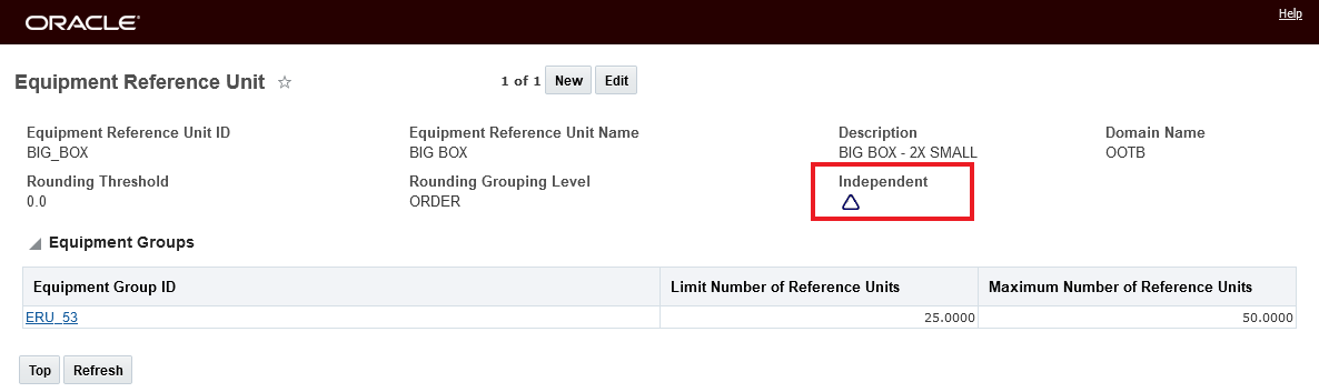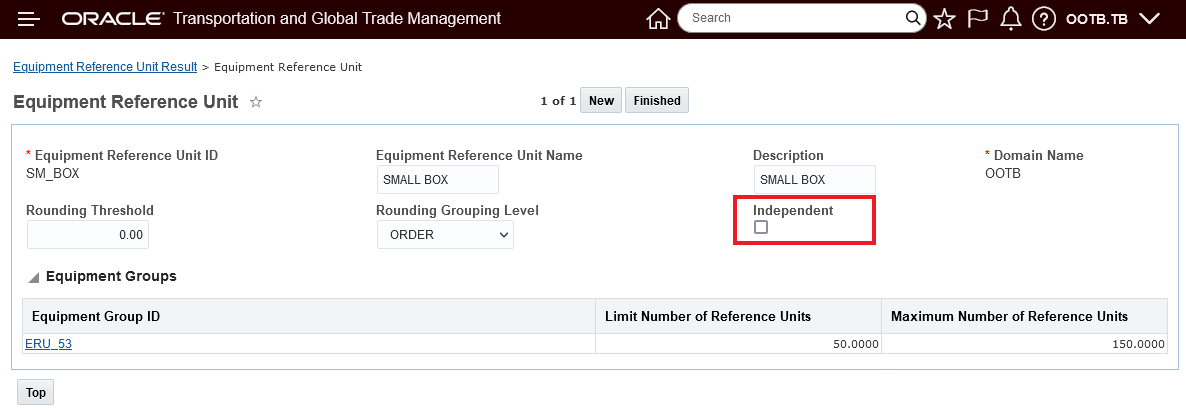 In the example below, there are two non-Independent Equipment Reference Units - a Small Box and a Big Box. In both cases, the Independent check box is unchecked.