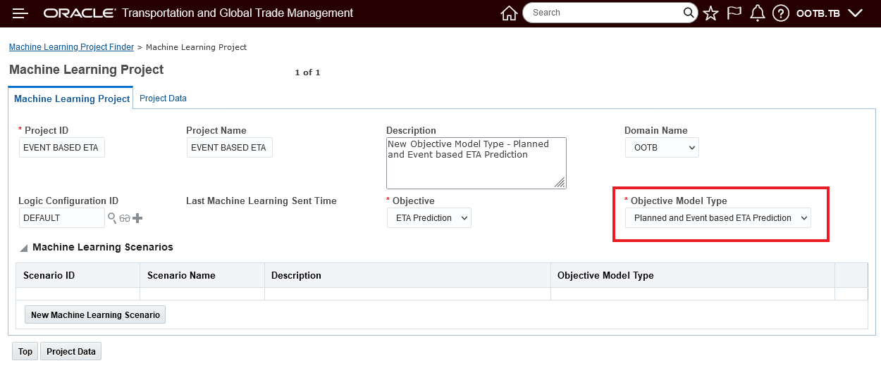The Machine Learning Project now supports the selection of two Objective Model types - the original Planned ETA Prediction type and the new Planned and Event based ETA Prediction model type. The Planned and Event based ETA Prediction model type includes the Planned ETA Prediction model - and then extends the model development process to include in-transit tracking event information.
