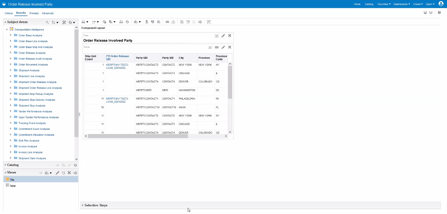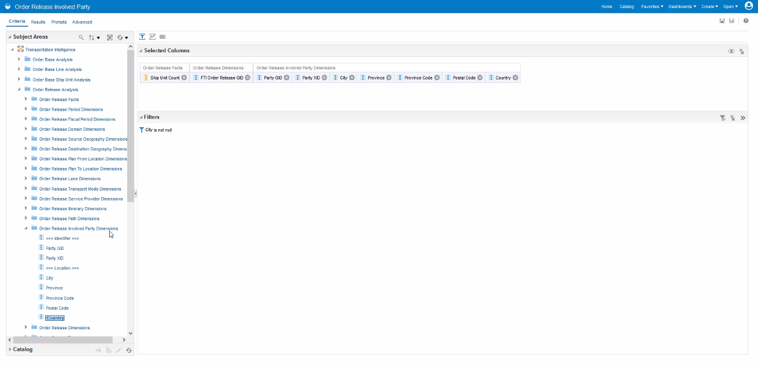 This feature extends the Transportation Intelligence solution to support the ability to slice your Shipment and Order facts by Involved Party. The solution supports all Involved Party qualifiers - whether Public or qualifiers that you have created for your implementation.