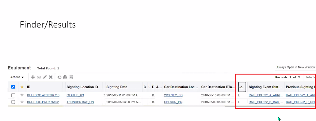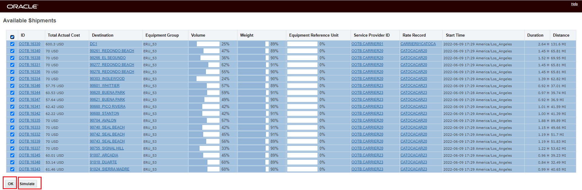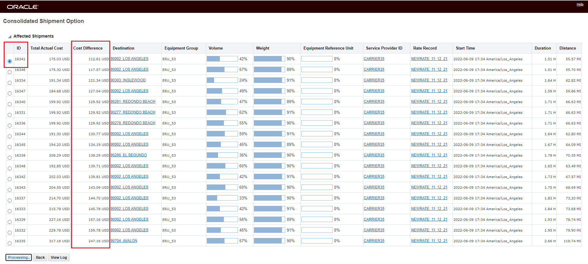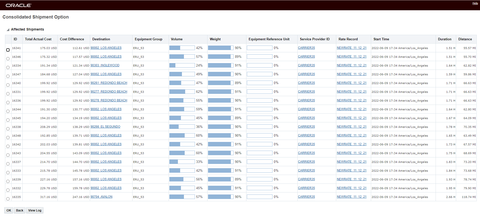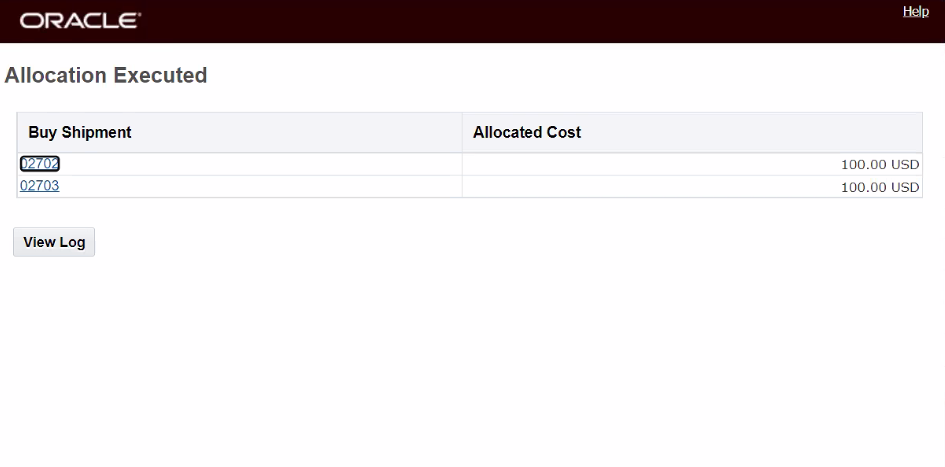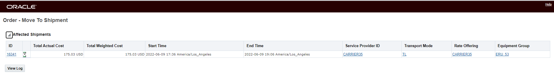 Below is an example of the results provided by the Allocate Shipments of Shipment Group action.