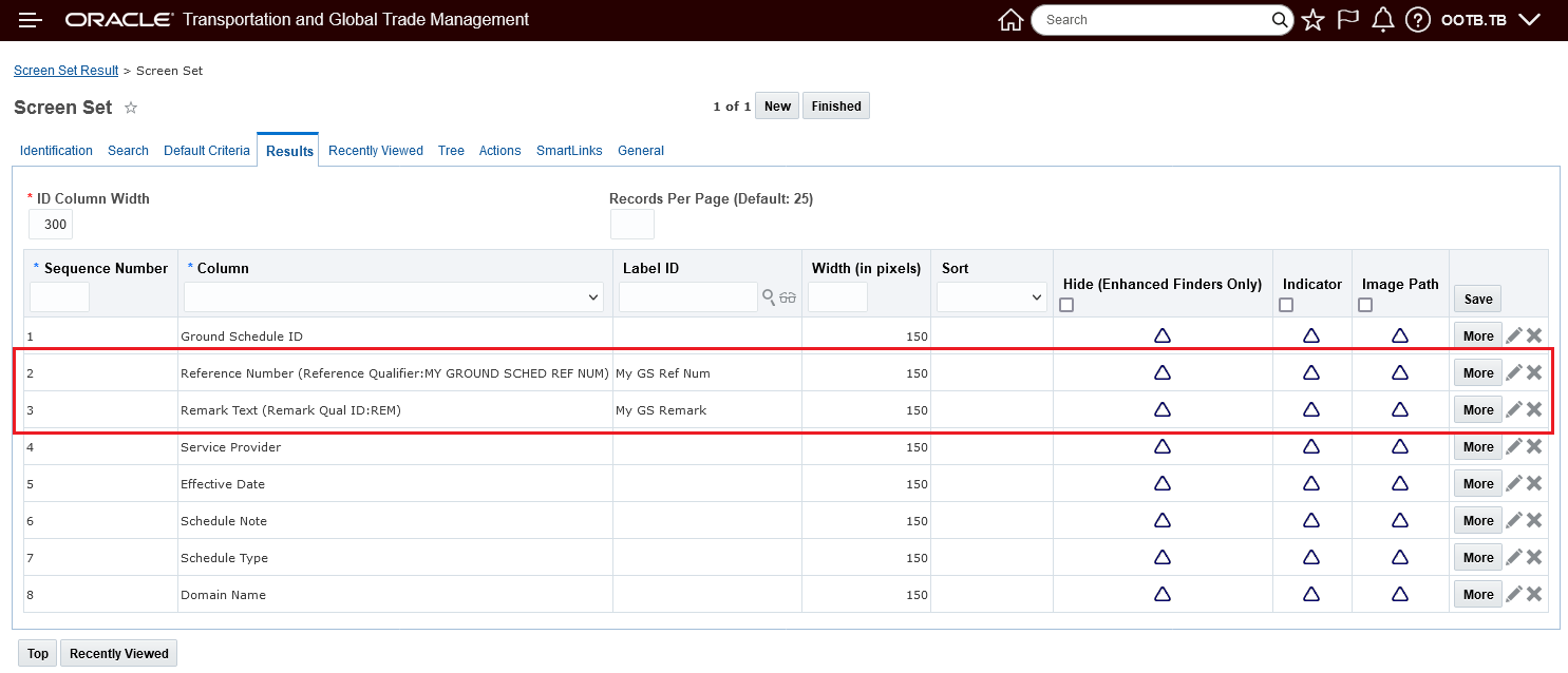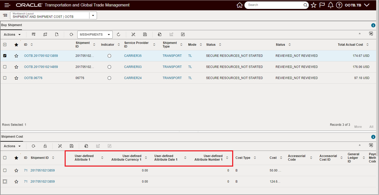 In the example below, the Shipment Cost Screenset used in the Enhanced Workbench has been configured to include an example set of the added User Defined Fields.