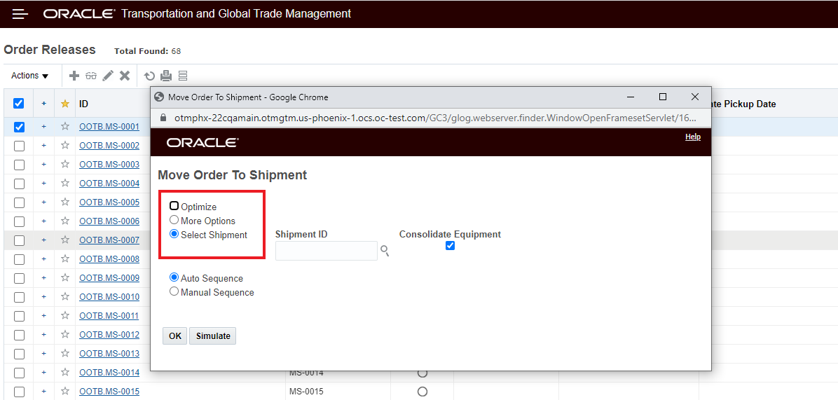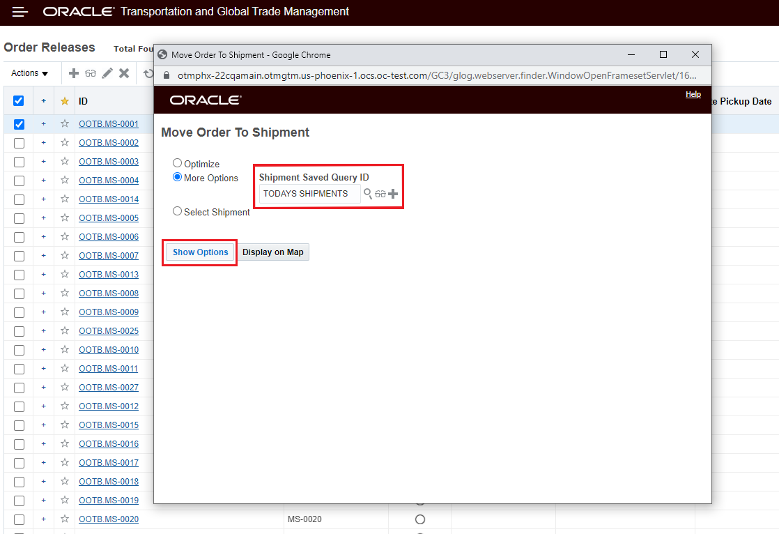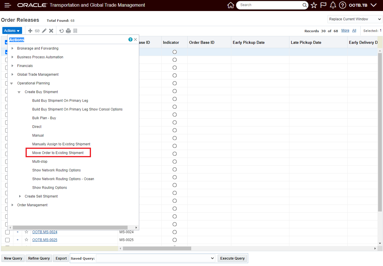 - Move Order to Existing Shipment Action - More Options - Enhanced