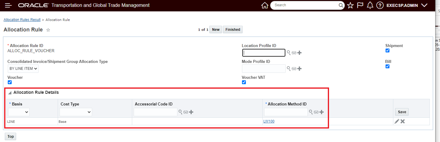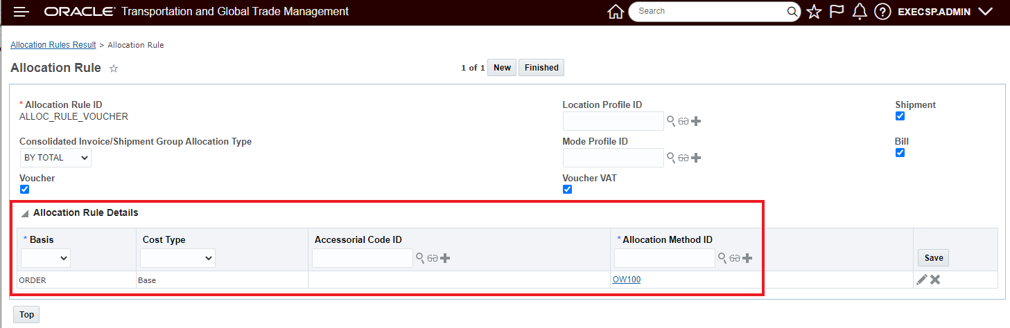 Below is the Allocation Rule used to do the Order Release Allocation. In this example, there is only one Order Release so all 450 USD VAT will be allocated to the single Order Release.