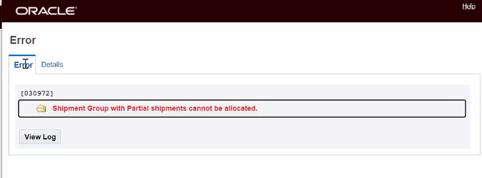 Note the action does not support the Allocation of Shipment Groups with Partial Shipment. An error will be provided if the Allocate Shipments of Shipment Group action is run against Shipment Groups with Partial Shipments.