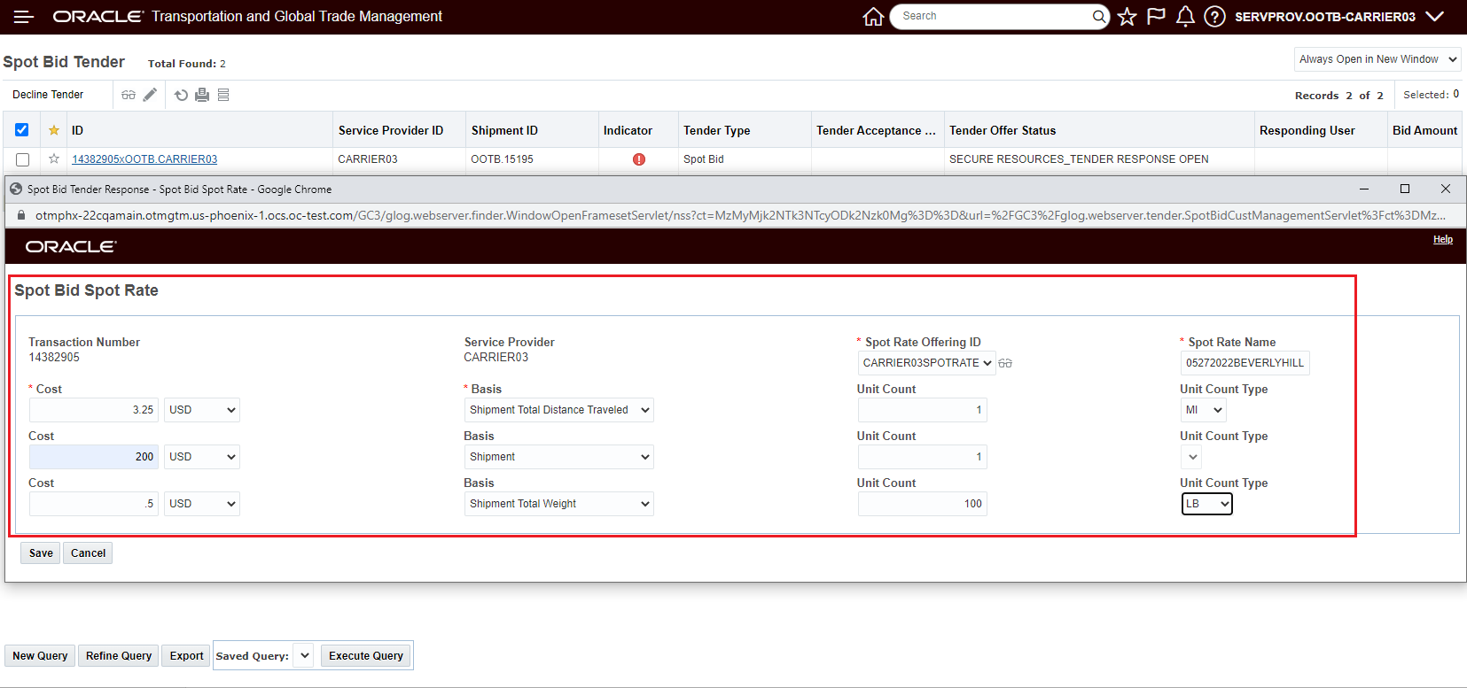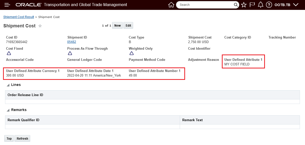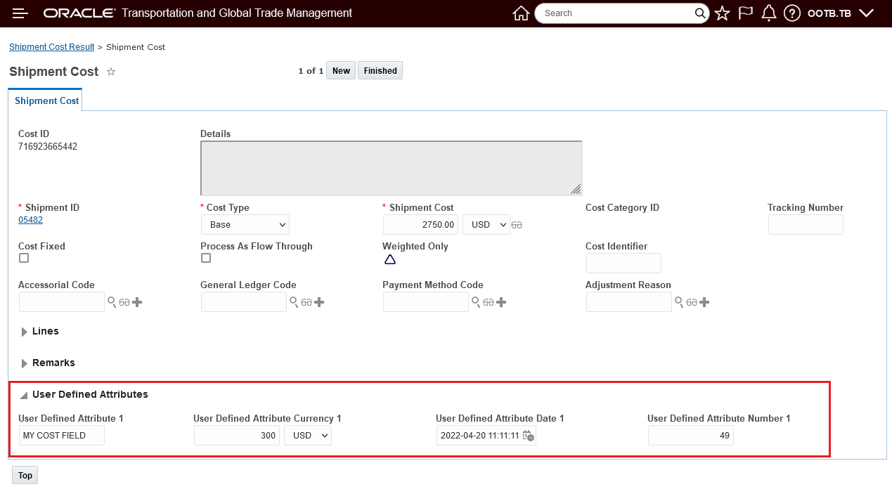 Provides you with additional configuration options for capturing your own Shipment Cost attributes. The attributes captured can then be provided to other systems using XML or REST APIs.