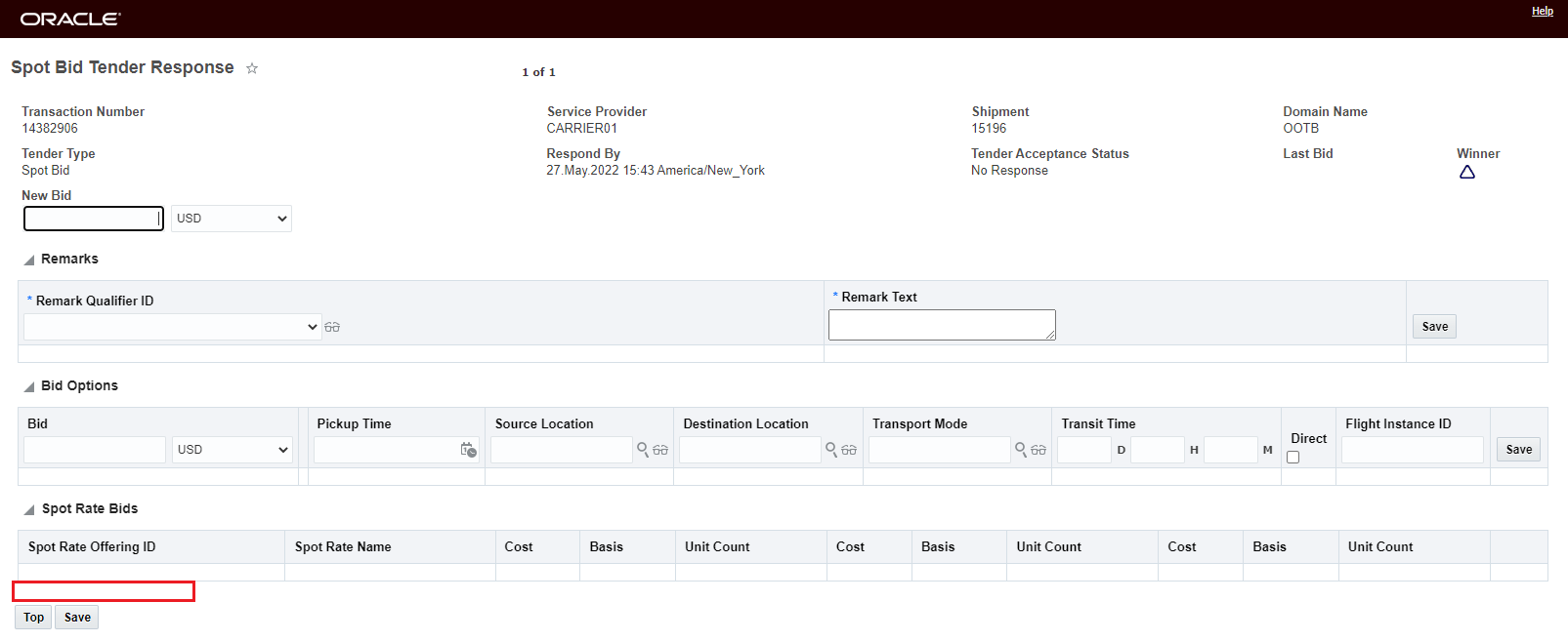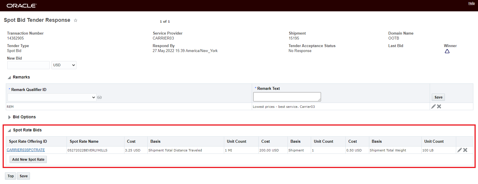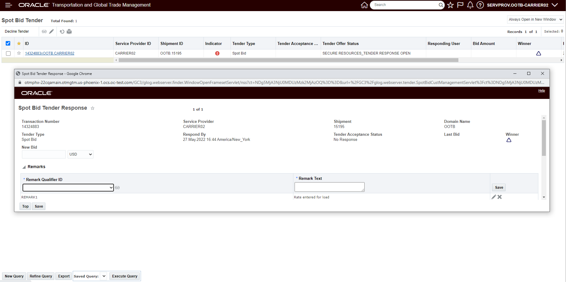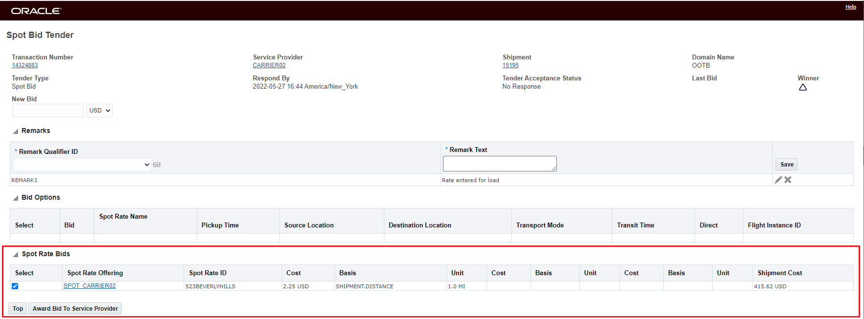This feature provides you with a new Subject Area - Open Tender Performance - that provides you with all the facts and dimensions required to develop Reports and Dashboards to analyze your Open Tenders (Broadcast and Spot Bid Tender) Performance.