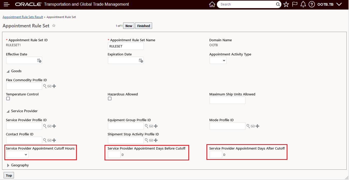 | 18 MAY 2023 | Transportation Management (Base) | Appointments - Set Stop Appointment Times Based on Stop Type | Updated document. Corrected feature information. |
